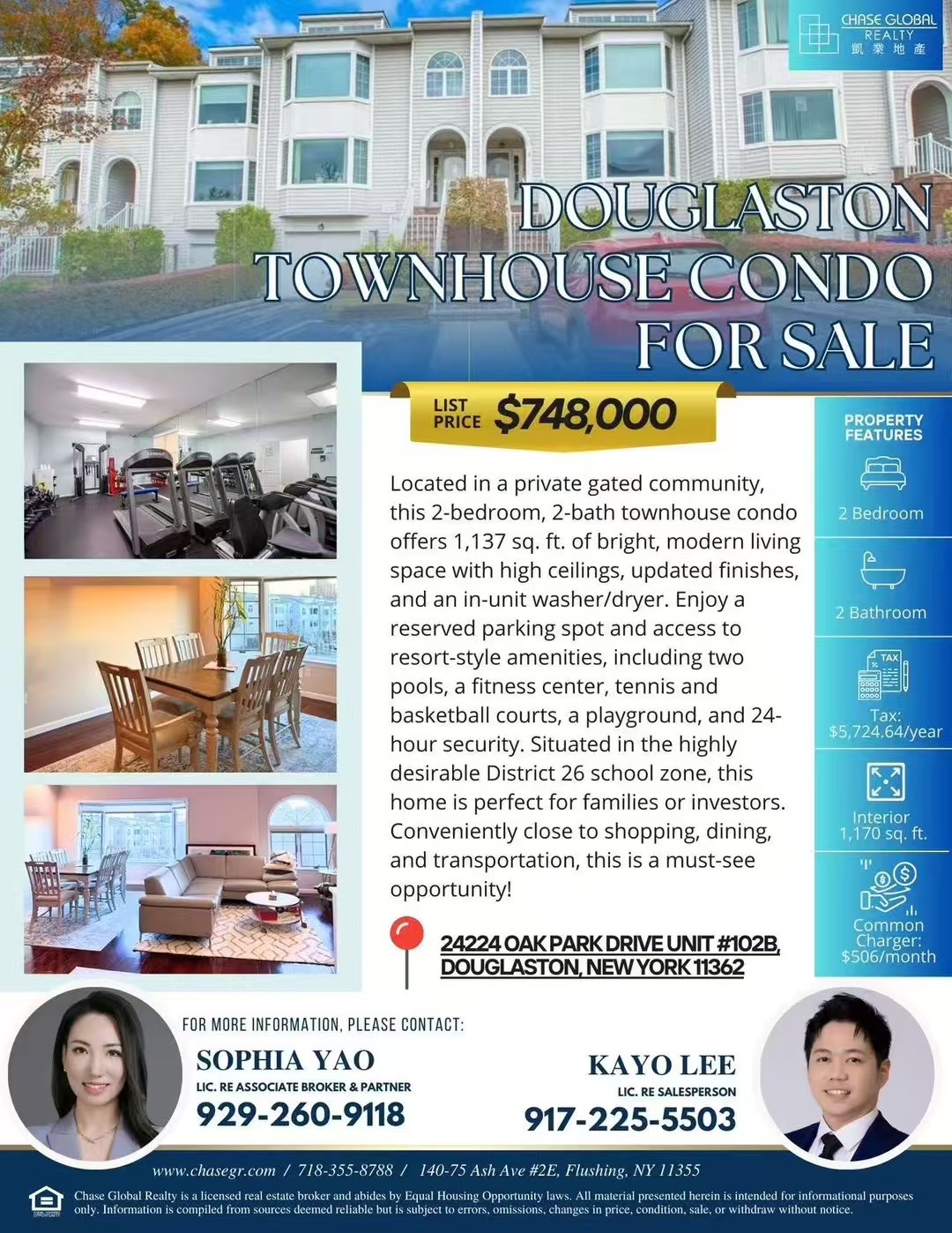 纽约小颈房子出售Little Neck NY 新上市小颈房屋出售小颈豪宅独家出售买卖🔥 凯业地产小颈-道格拉斯顿联排别墅公寓出售🔥💰售价$74万8💰