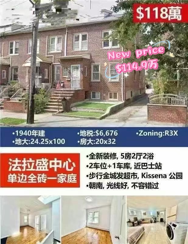 纽约法拉盛房屋出售 Flushing NY新上市法拉盛房子出售法拉盛豪华住宅独家出售买卖 🔥法拉盛单边全砖一家庭🌟全新装修, 5房2厅2浴, 2车位+1车库