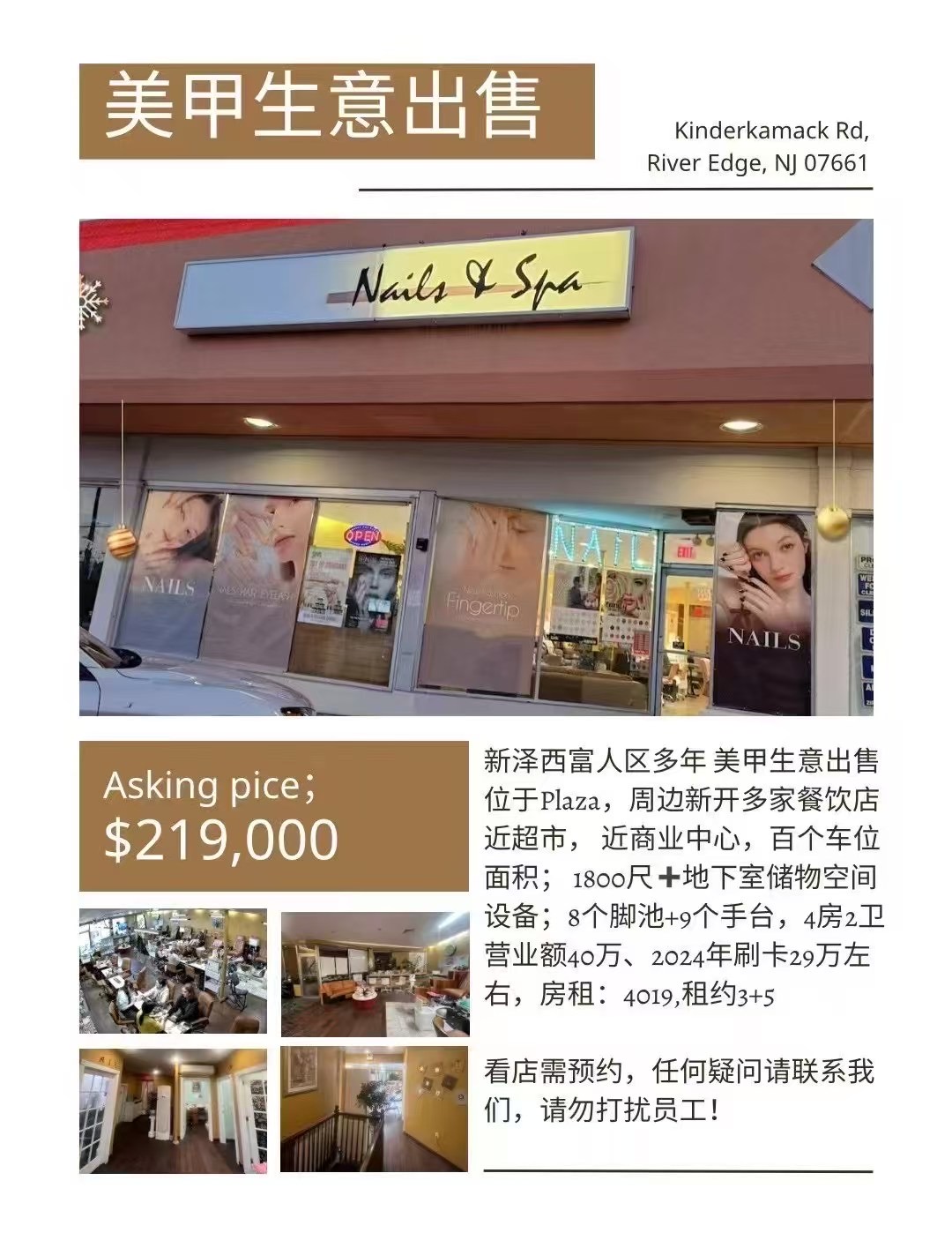 獨家出售新澤西River Edge富人區多年美甲生意,asking;$21.9萬