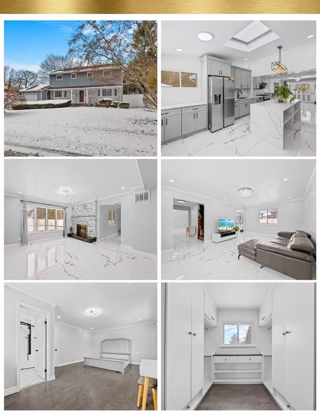 全新裡外翻新過 朝南多窗阳光充足 一樓 扩建的餐厨配有天窗,正式的餐厅,带温馨燃气壁炉的书房以及宽敞的客厅 1卧1浴、整层地板均铺设大理石。