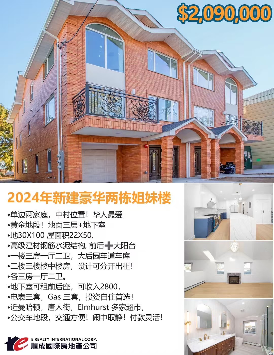 纽约皇后区房子出售买卖网Queens NY Residential新上市皇后区房屋住宅出售网#顺成地产❤️❤️出售2024 年新建豪华两栋姐妹楼,open house 12-2:00 pm