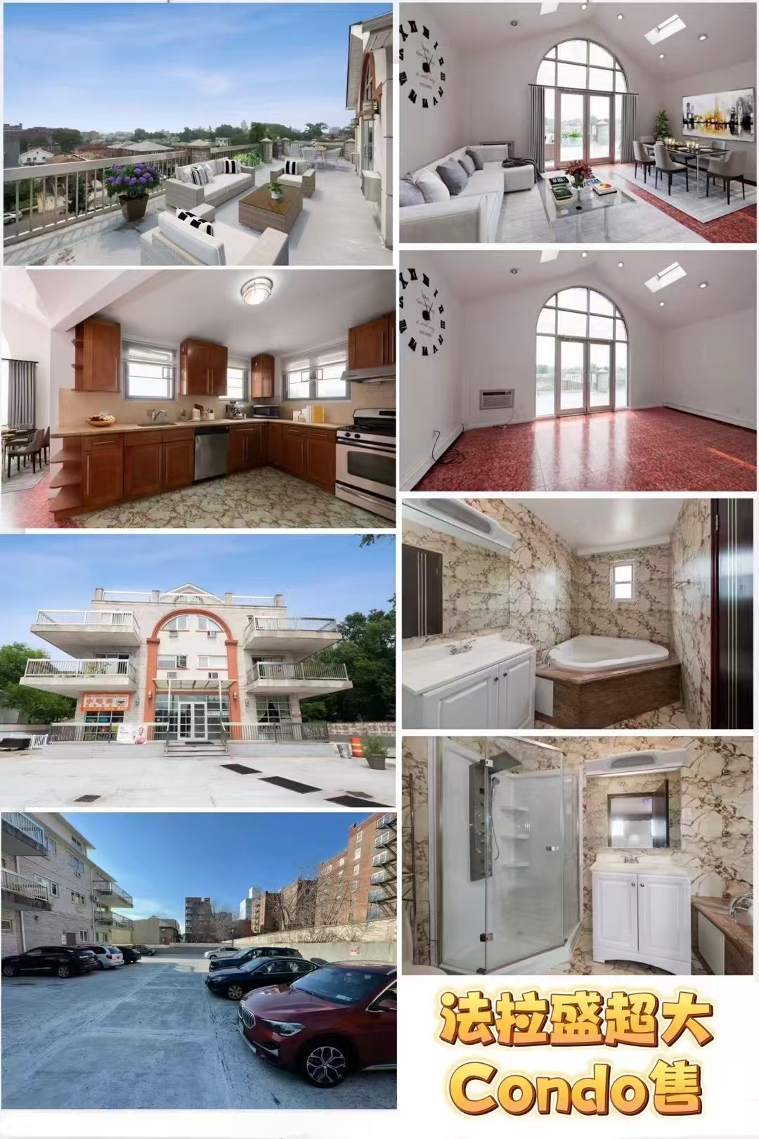 [烟花]新上市,法拉盛顶楼观景Condo售 实用面积1148尺+815尺超大露台,接近2000尺 2房2浴1大厅1厨,高Ceiling,落地窗管理费$310,包冷热水带洗衣烘干机保养一流拎包入住