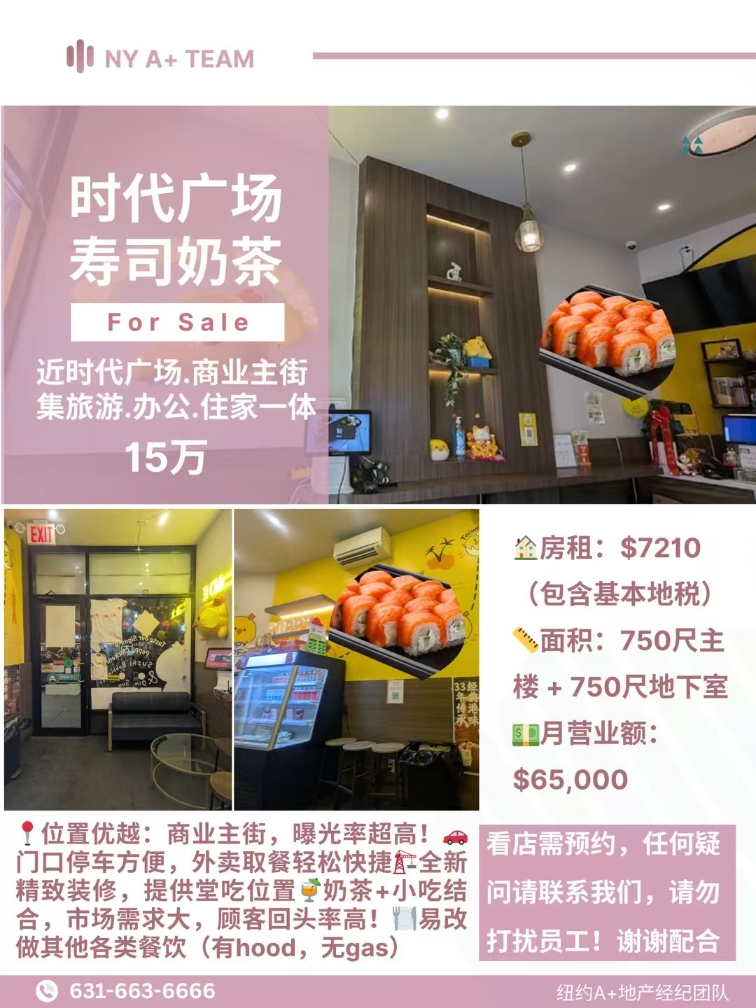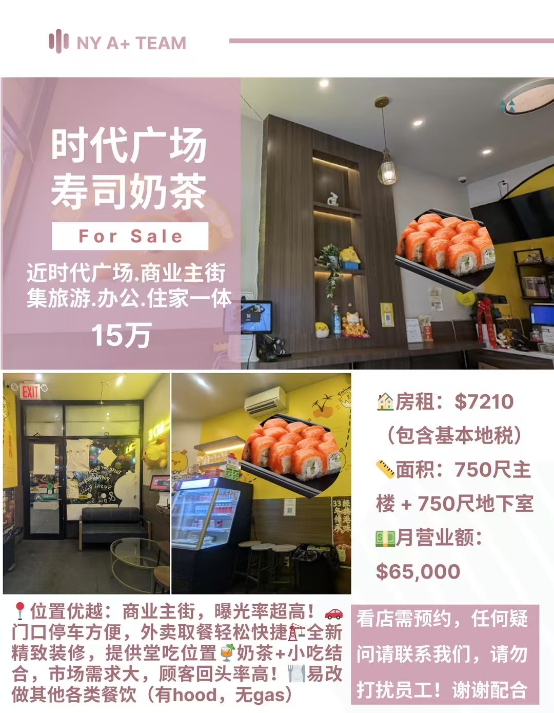 🔥【曼哈顿时代广场寿司奶茶店生意转让】🔥