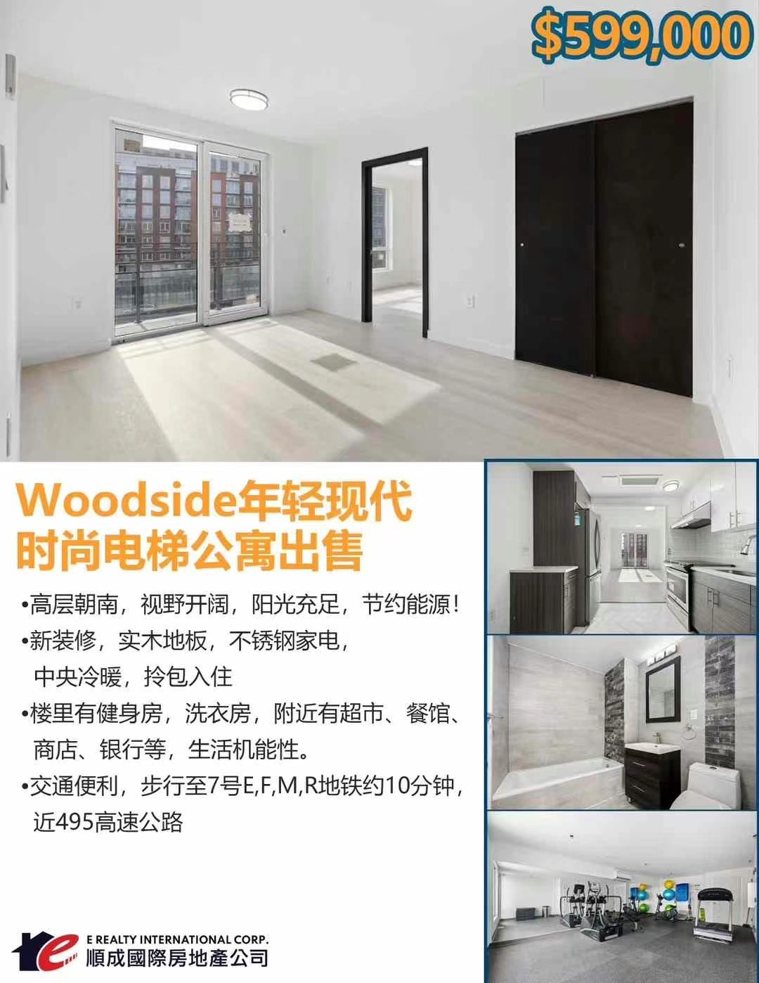 纽约皇后区木边房子出售Woodside Queens NY新上市木边房屋独家出售买卖🎈Woodside年轻现代时尚电梯公寓出售🎈新装修两房两浴➕阳台,仅售$59.9万