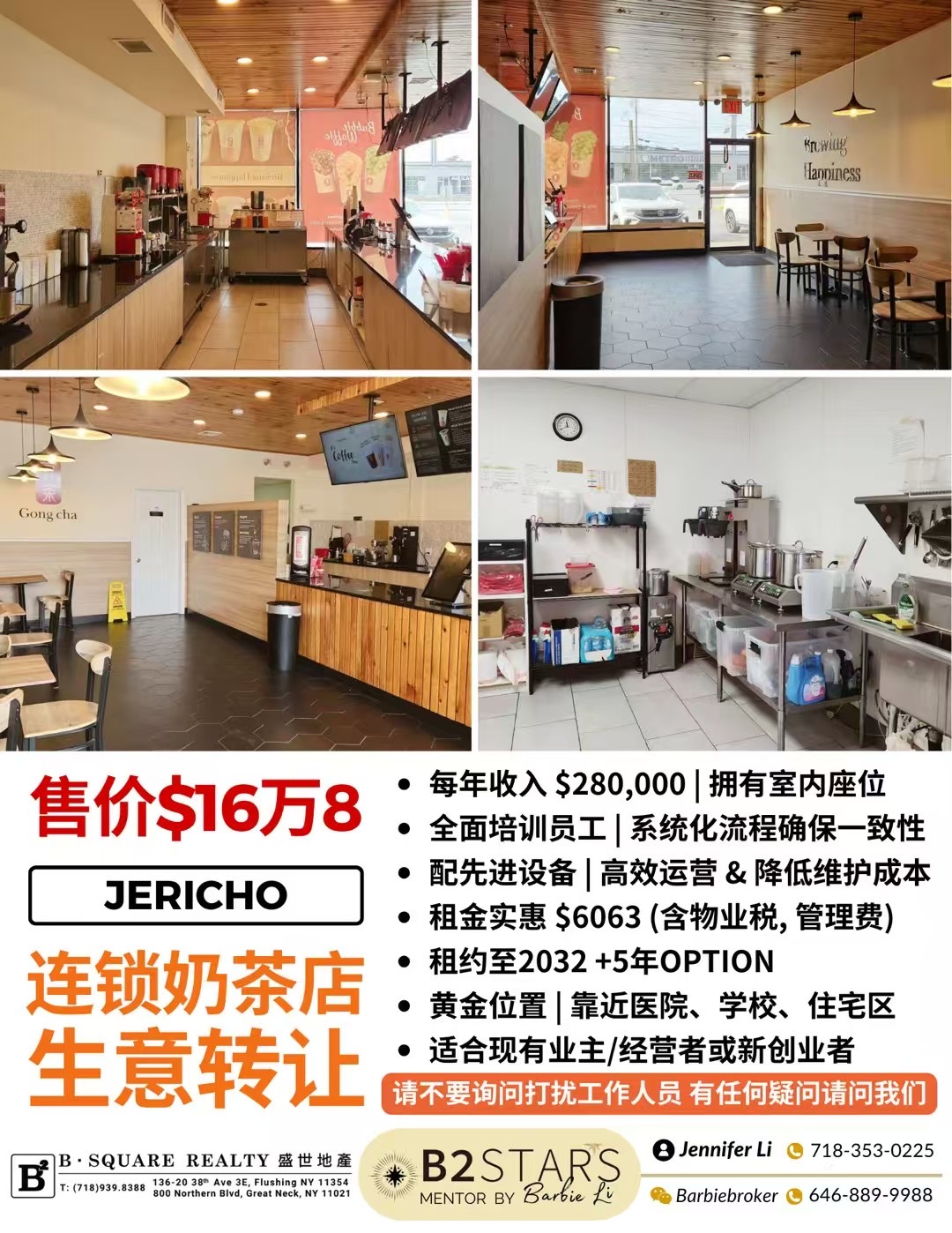 🧋长岛Jericho知名连锁奶茶店生意转让🧋