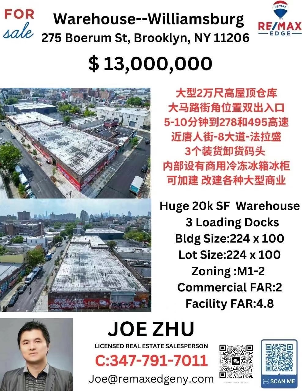 🔥罕见Williamsburg 2万尺大型仓库