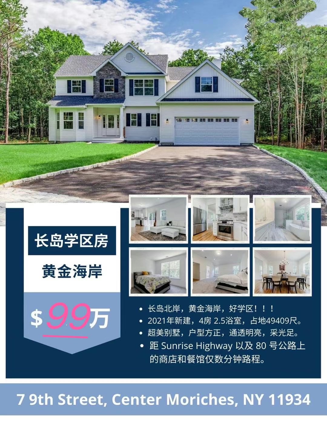 低地稅$1.8 万地址 : 7-9th st Center Moriches NY 11934歡迎合作,电话929-391-7860 Aimei