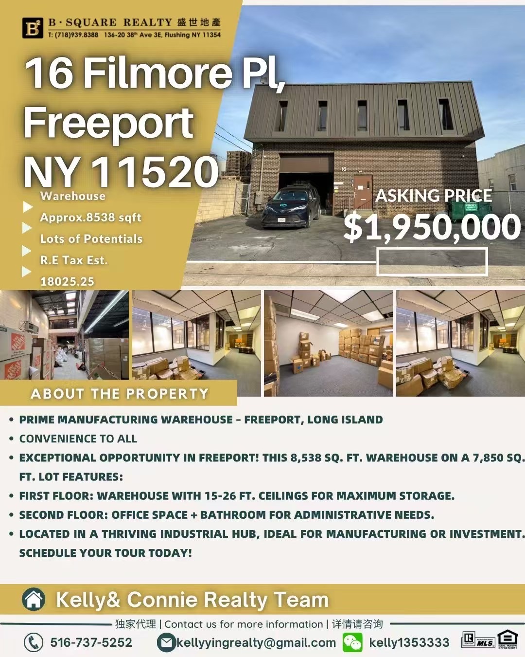 [庆祝]急售长岛Freeport黄金仓库[庆祝]适合橱柜行业,材料行,铁工厂,类似亚马逊仓储,带货直播等等 叫价💰195万 (诚意卖家,可议价)