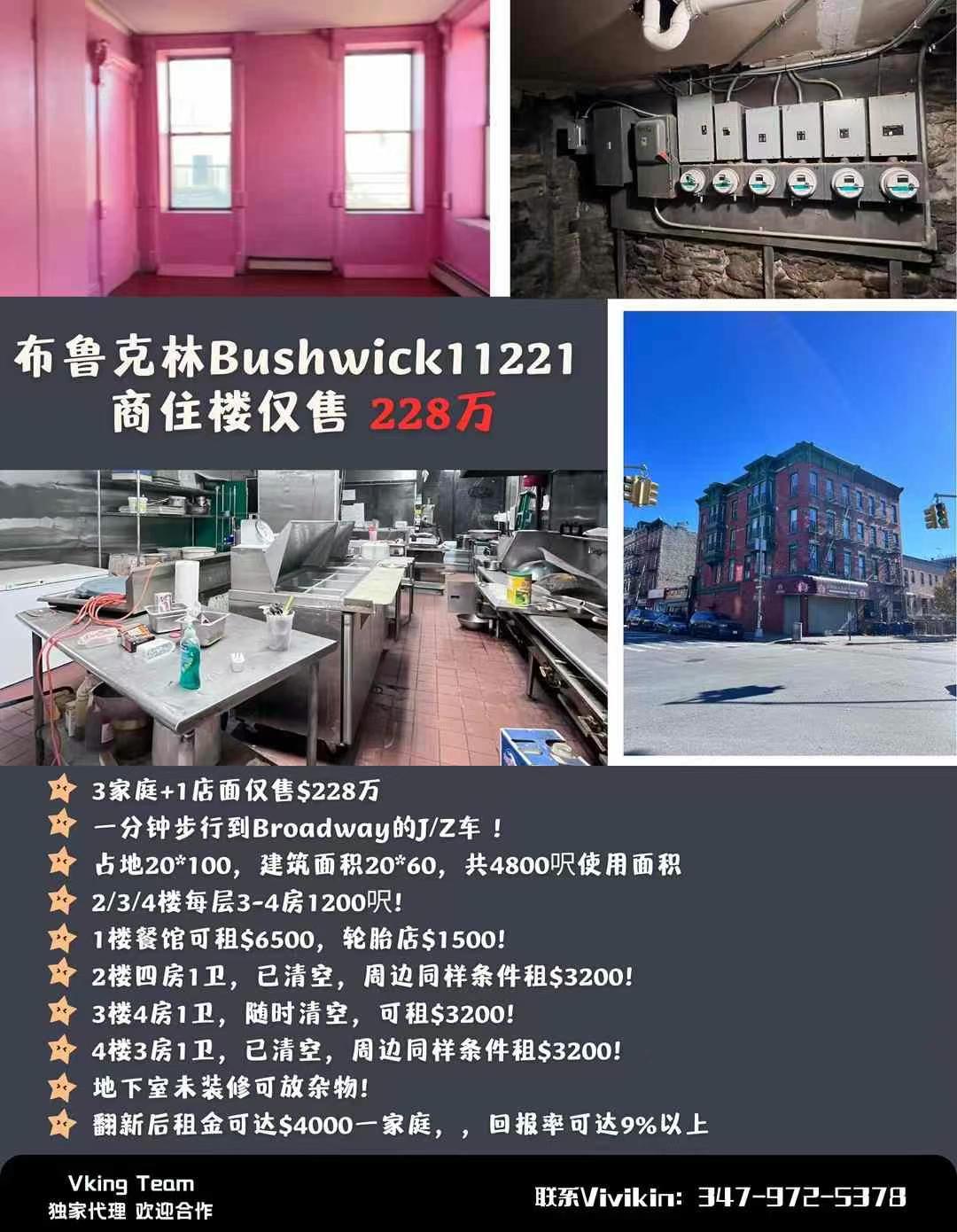 纽约布鲁克林房子出售 Brooklyn NY新上市布碌仑房屋住宅出售布鲁克林豪宅独家出售买卖🧧布鲁克林Bushwick11221商住楼出售