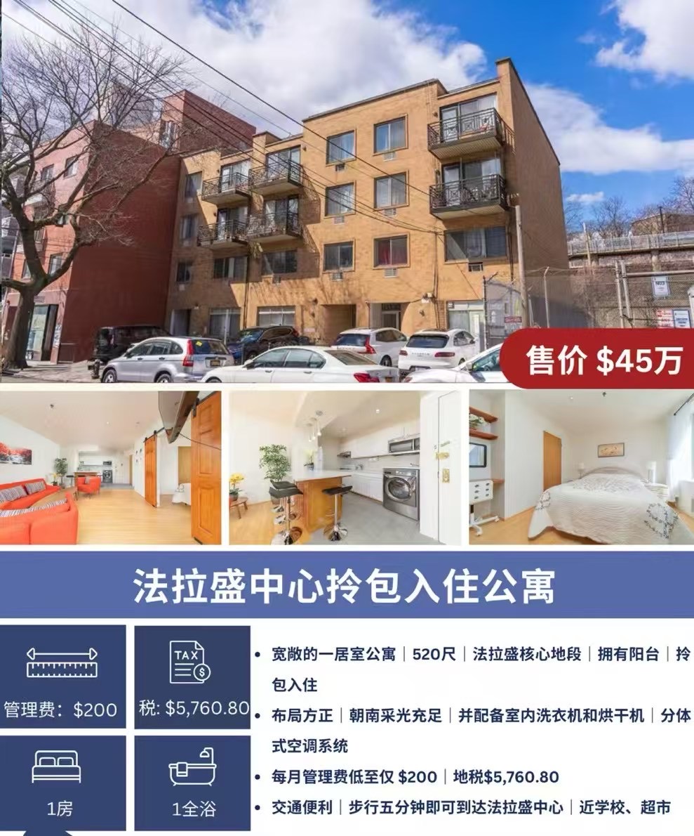 纽约法拉盛豪华公寓出售 Flushing Luxury Coop NY新上市法拉盛高级合作公寓大楼出售法拉盛高大上公寓独家出售买卖 法拉盛中心公寓包拎入住 售价$45万͏