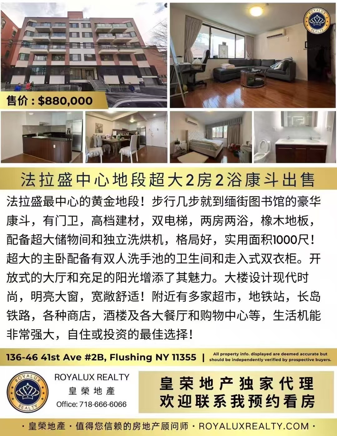 纽约法拉盛豪华康斗出售Flushing Luxury Condo NY 新上市法拉盛高档康斗出售法拉盛豪华康斗独家预售买卖【新上市】皇荣地产独家代理好房源