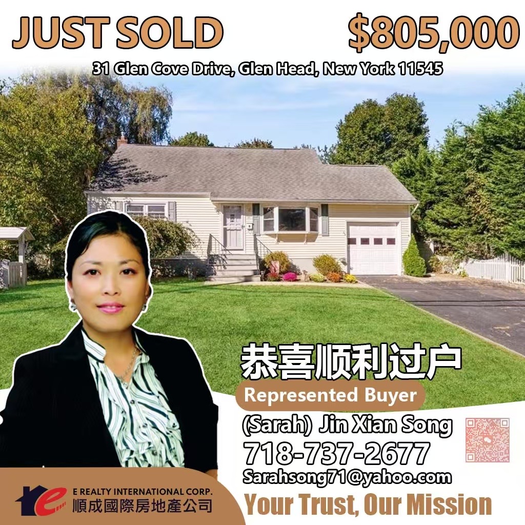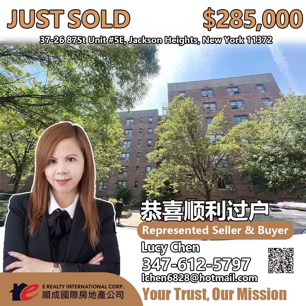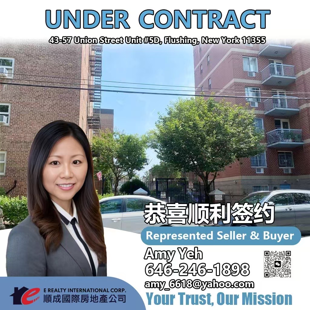 纽约华人地产公司纽约高端经验房地产经纪 The Best Real Estate Agent in New York 纽约地产经纪最佳地产经纪人E Realty Int’l Corp. 顺成国际房地产恭喜以下同事顺利签合同/过户! 愿你们的业绩如同飞箭,直线上升!感谢各位客户选择顺成,我们将为您提供最贴心、最专业的服务!Congratulations to our agents for listings under contract/closed! May your performance soar like an arrow, rising straight up! Thanks to all clients, and we will provide you with the most attentive and professional service!