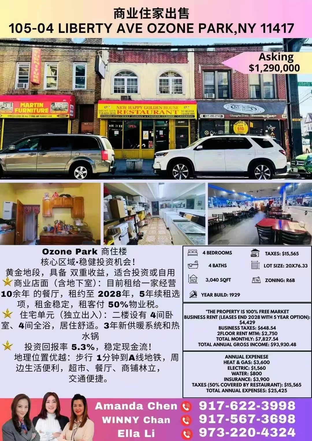 Ozone Park 商住楼售价129万 核心区域绝佳投资机会!