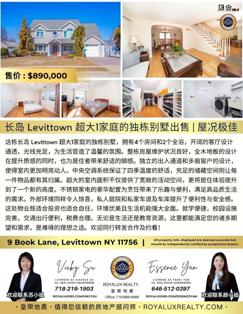 长岛莱维顿房子出售Levittown NY新上市长岛莱维顿房屋独家出售买卖您好,我们【即将上市】皇荣地产独家代理好房源