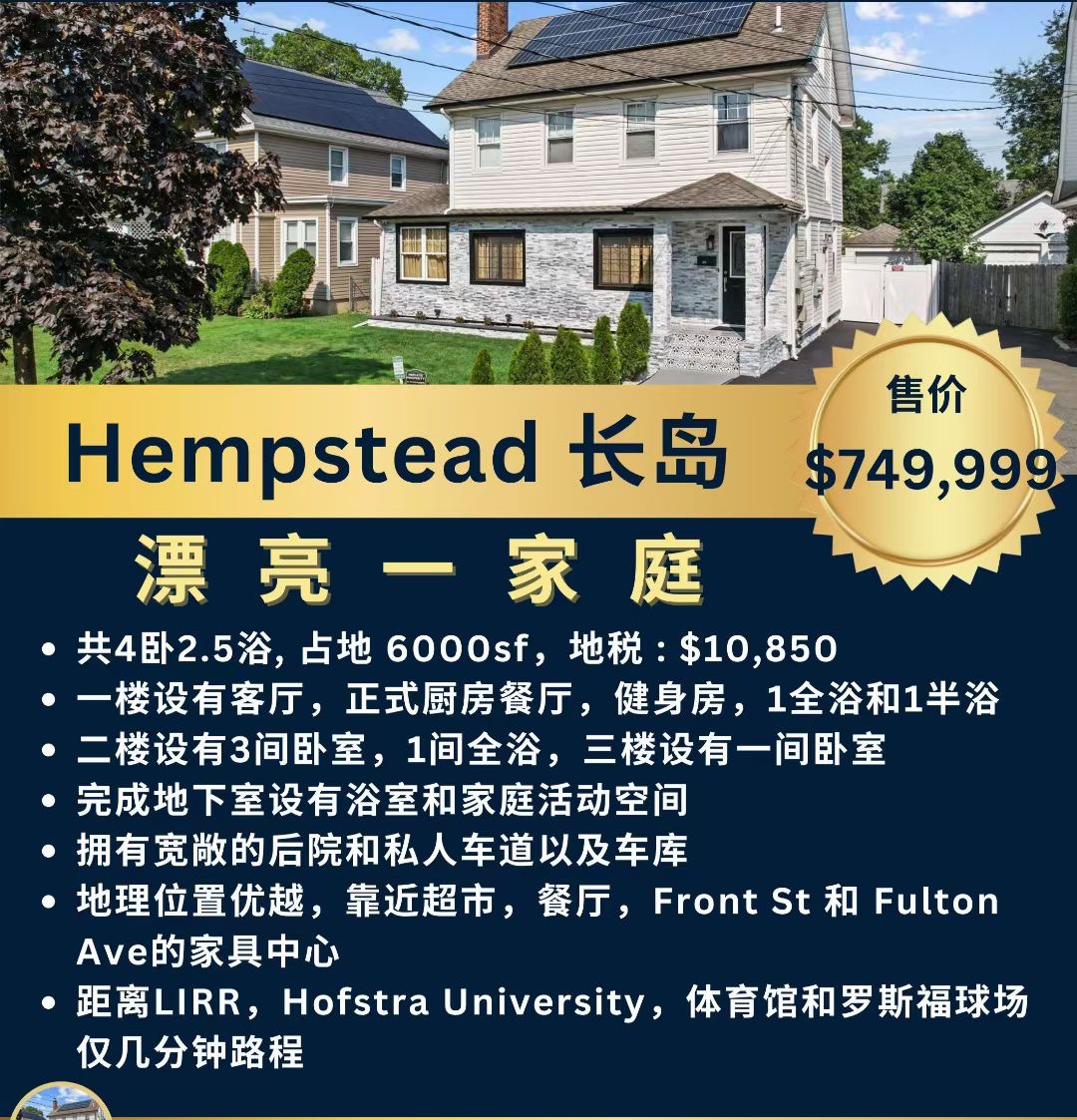 长岛房子出售网Long Island NY新上市长岛房屋住宅出售长岛豪宅独家代理买卖🔥 凯业地产Long Island一家庭出售🔥💰售价$849,999