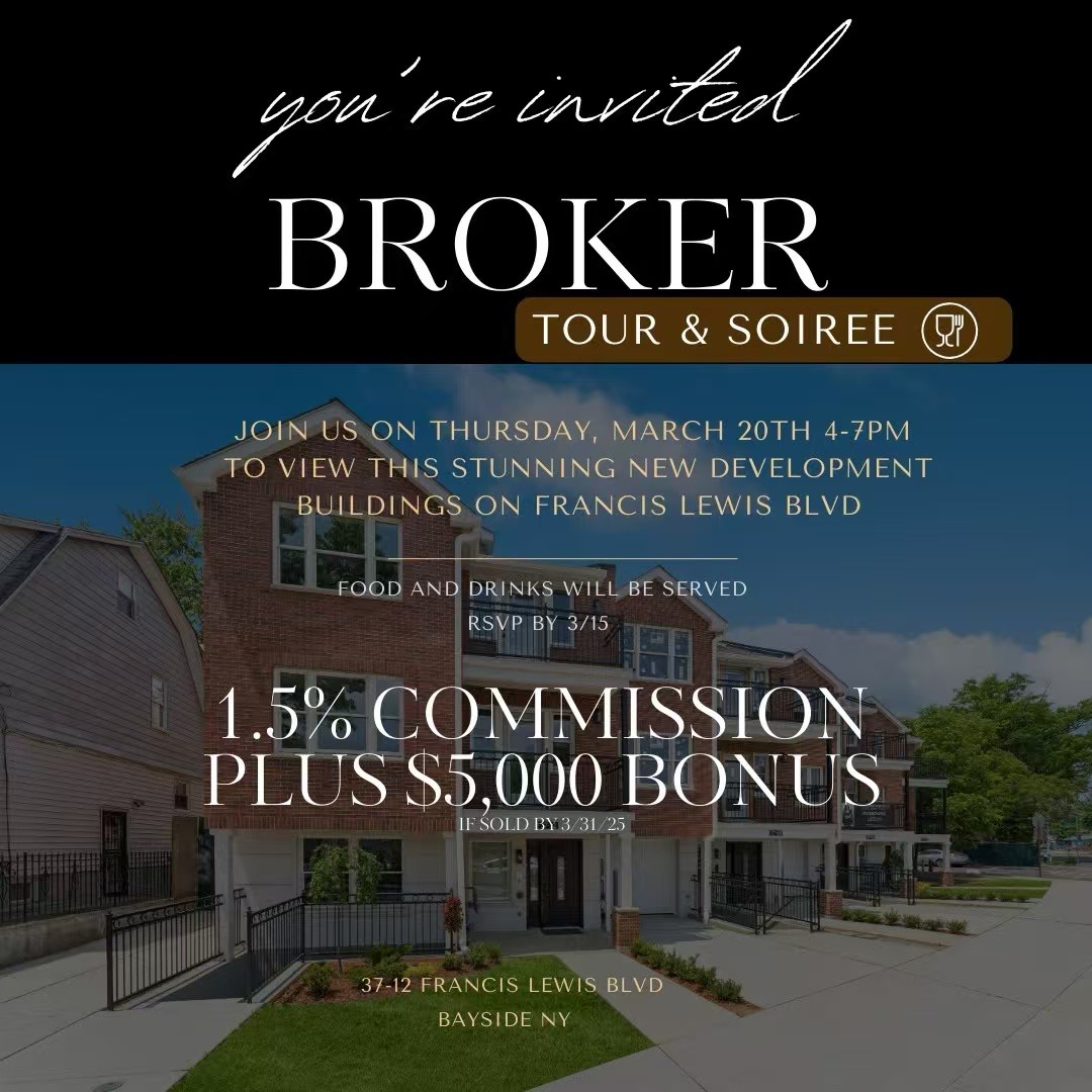 Join us for an exclusive VIP Broker Open House featuring brand-new development buildings on Francis Lewis Blvd!