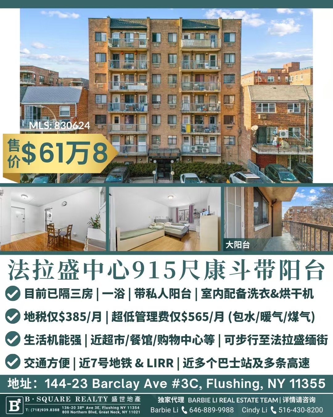 纽约法拉盛豪华康斗出售Flushing Luxury Condo NY 新上市法拉盛高档康斗出售法拉盛豪华康斗独家预售买卖 已有offers 抓紧 本周三明天(3/12) 下午4:00PM🎈可以看 需预约☎️Cindy516-430-8200🔥法拉盛中心915尺康斗带阳台 目前已隔三房