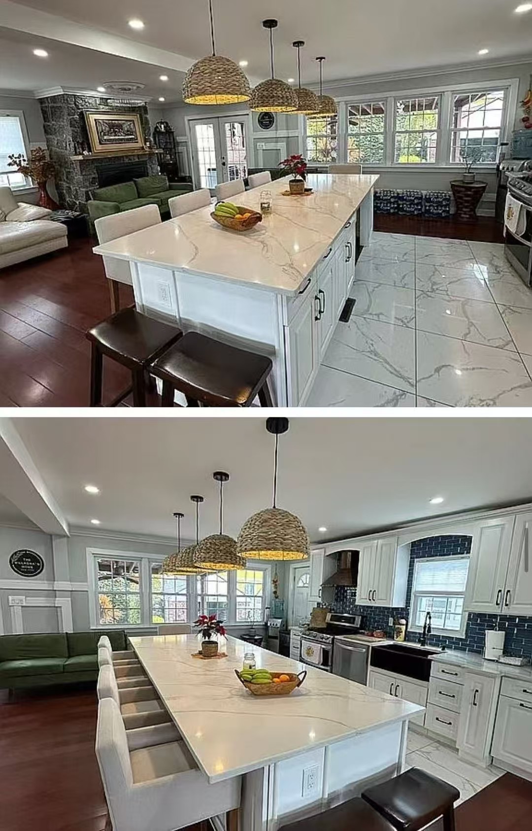 • 🍽️ 开放式厨房:现代化设计,配备超大定制石英石岛台,满足您的烹饪需求。