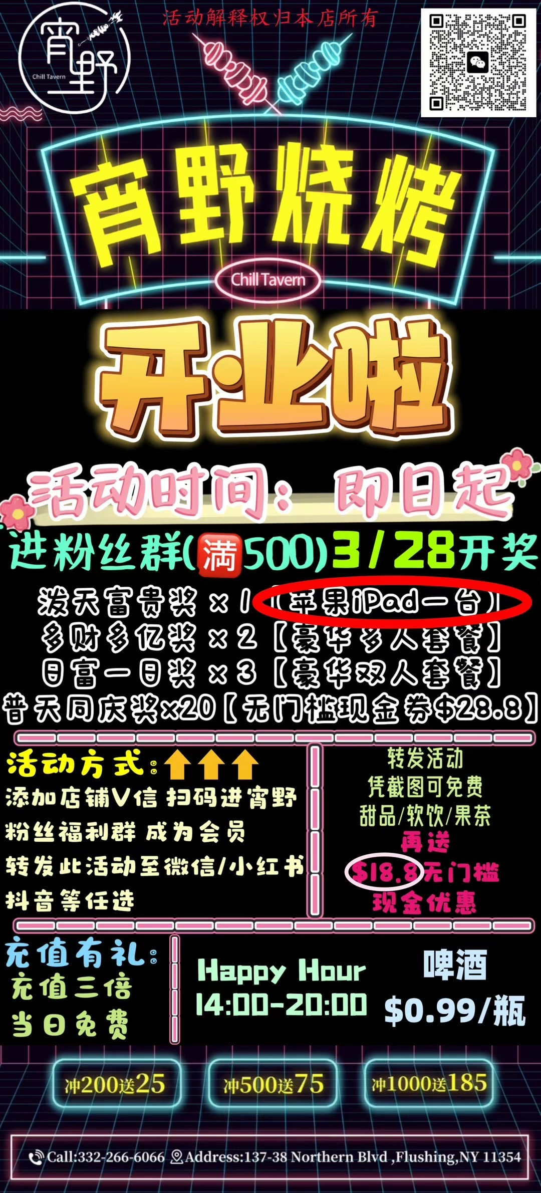 烧烤法拉盛新开张🍖宵野-法拉盛店🍺