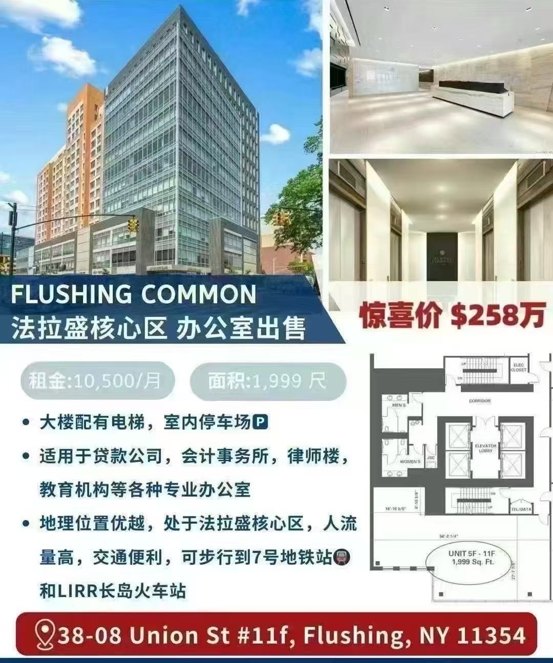 法拉盛办公室出售 新上市🌈独代家理👏🏼 惊喜价💰258万❗͏ 🤝欢合迎作☎转发🏢法拉盛 Flushing commons地标建级筑 25年减地税 级高办公楼出售 适各合种专业公办室