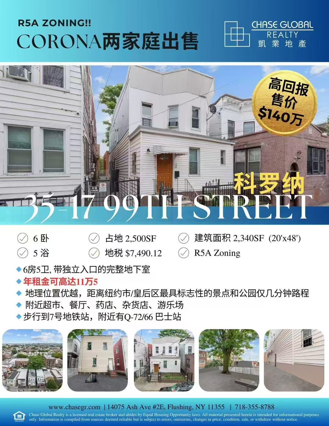 纽约可乐娜房子出售Corona NY 新上市可乐娜房屋住宅出售可乐娜豪宅独家出售买卖