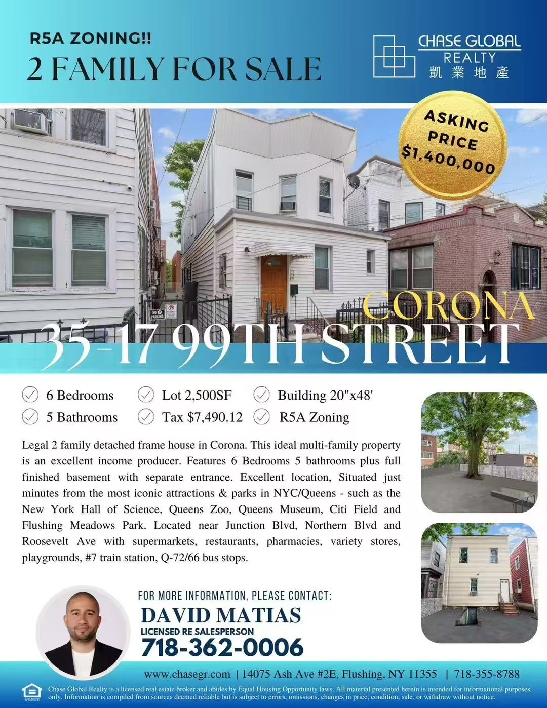 纽约可乐娜房子出售Corona NY 新上市可乐娜房屋住宅出售可乐娜豪宅独家出售买卖🔥CORONA科罗纳两家庭出售🔥 #凯业地产全新房源