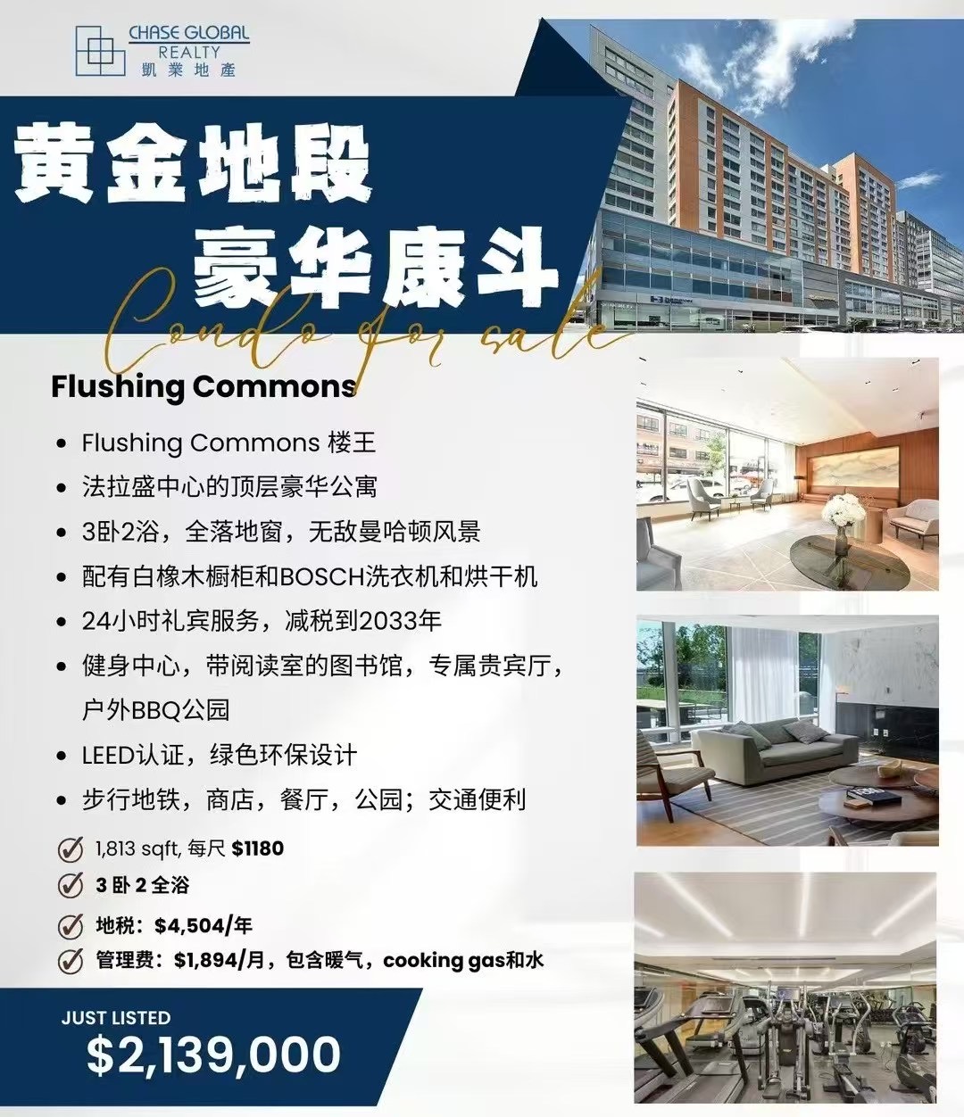 纽约法拉盛房屋出售 Flushing NY新上市法拉盛房子出售法拉盛豪华住宅独家出售买卖 法拉盛楼王顶层 3房2浴 售213万9千