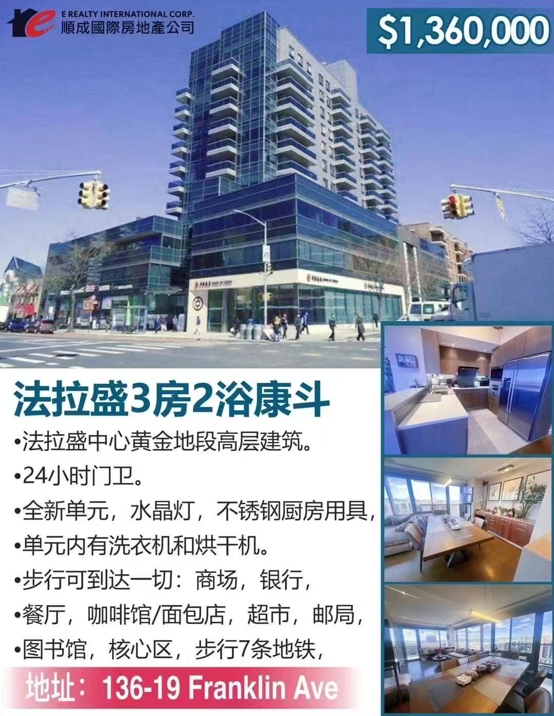 ❤️纽约法拉盛豪华康斗出售Flushing Luxury Condo NY 新上市法拉盛高档康斗出售法拉盛豪华康斗独家预售买卖 ❤️❤️出售 法拉盛中心缅街康斗三房一厅,两个卫生间,带双阳台,屋主自己买过来重金打造 !更新两个睡房打通一个大套房,所有的电器水晶灯都是高级配套!目前当两房二卫一厅使用,空间大面积是1200尺,楼下就是中国银行,24小时门卫、步行地铁超市,图书馆,餐馆,值得必看!管理费900 ,厨电全包 !地税一年3100 仅此一套 !机会难得!仅售价$136 万!646 508 9880