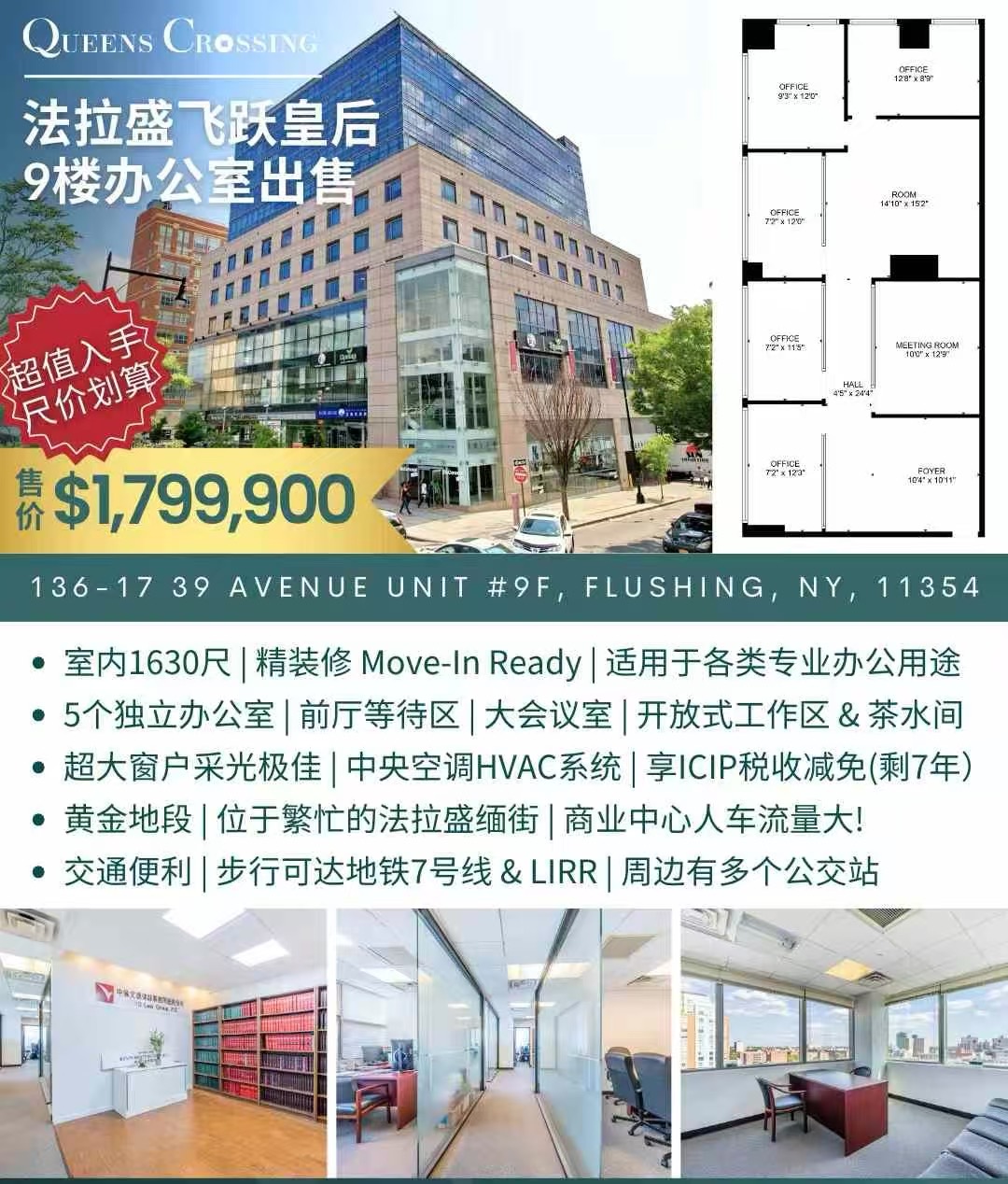 🔥 超值入手,尺价划算!🏢 法拉盛飞跃皇后9楼办公室