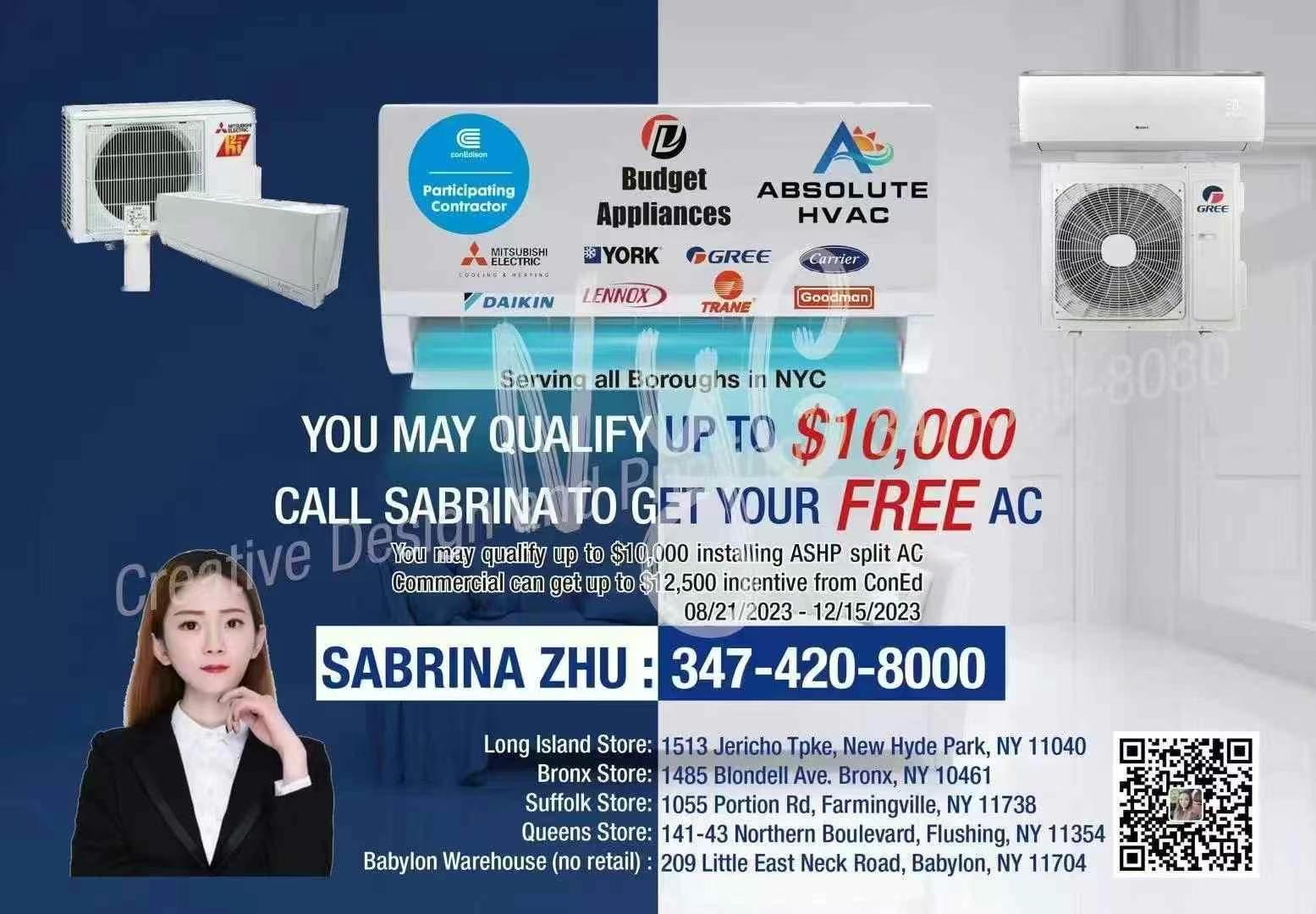 推荐一个长岛金牌美女电器销售-Sabrina Zhu,认真负责专业!升级家电、洗烘、安装空调联系她,请扫名片上二维码或电话联系,提Serena 有优惠。