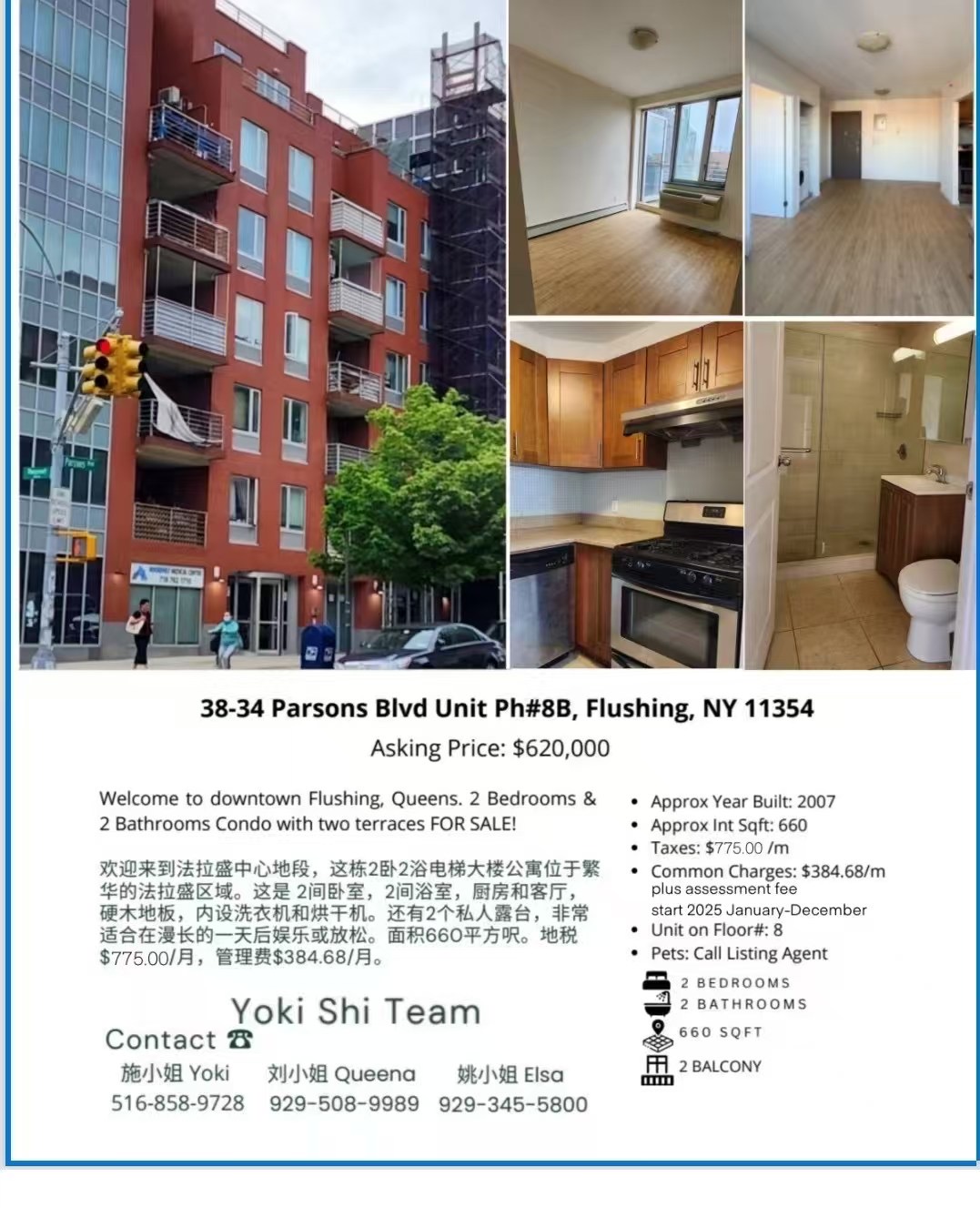 纽约法拉盛豪华康斗出售Flushing Luxury Condo NY 新上市法拉盛高档康斗出售法拉盛豪华康斗独家预售买卖 💖惊喜价,60万8千,可以买到flushing 中心两房两位2阳台660尺带阳台的康斗,不要错过🔥独家代理flushing中心康斗🔥最新价钱,不要错过好地段💖两房两卫,面积660尺,两个阳台,