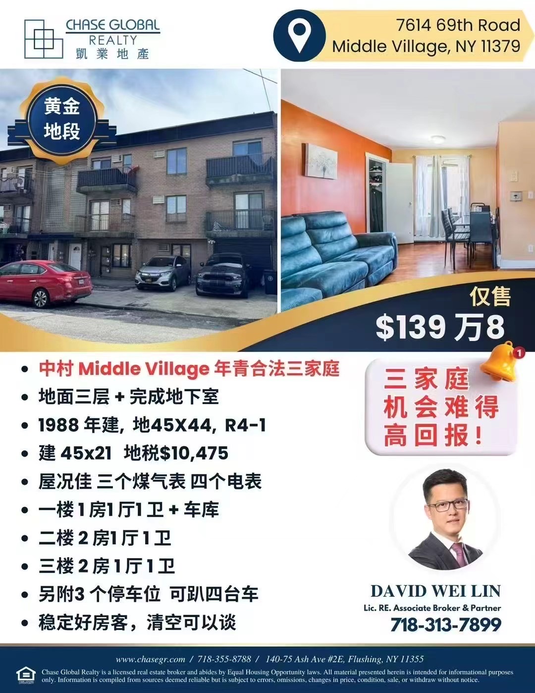 纽约 皇后区中村房子出售Middle Village Queens NY新上市中村房屋独家出售买卖👏凯业地产独家代理👏