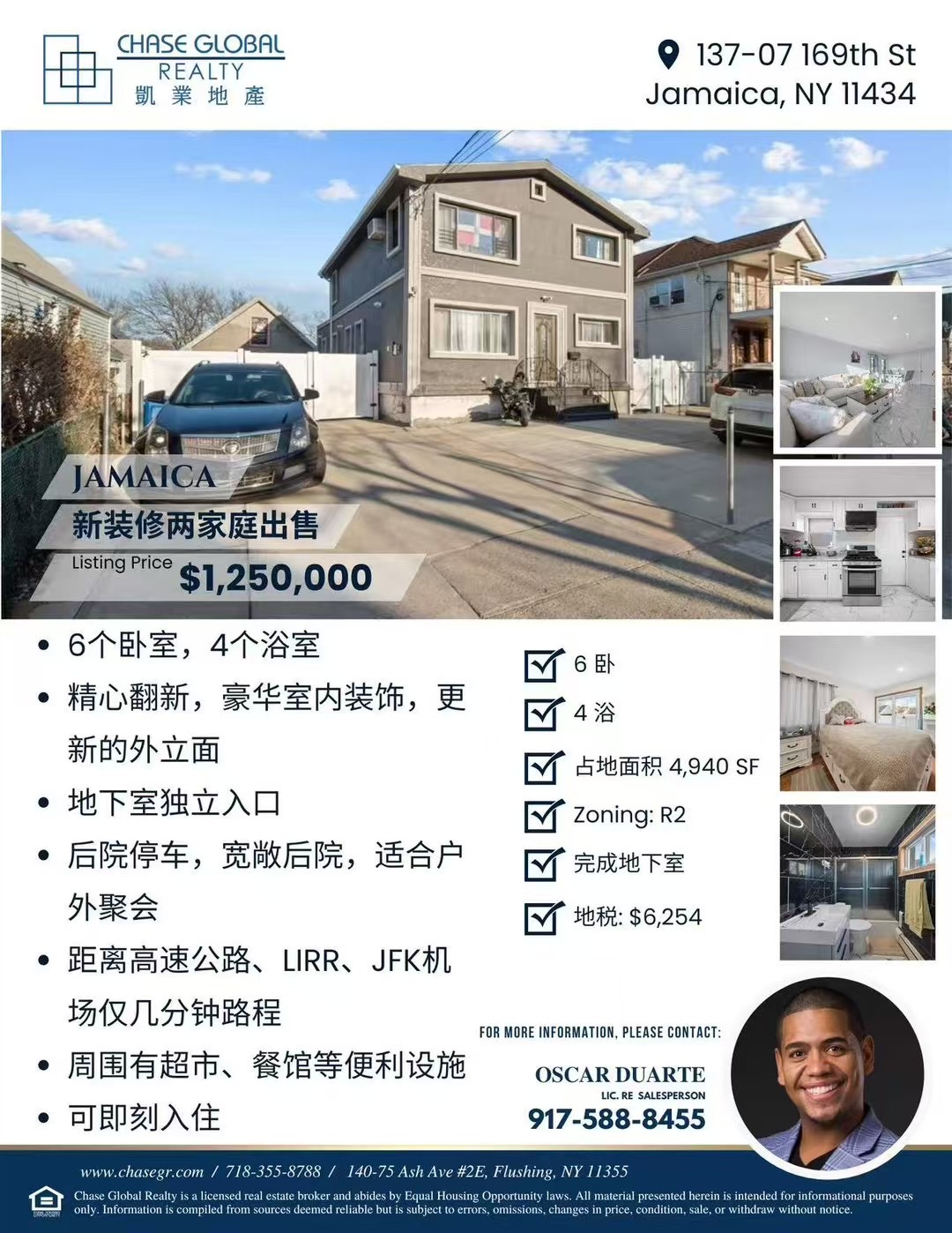 纽约房地产网 皇后区房子出售买卖网Queens NY Residential新上市皇后区房屋住宅出售网🔥凯业地产Jamaica 新装修两家庭出售🔥