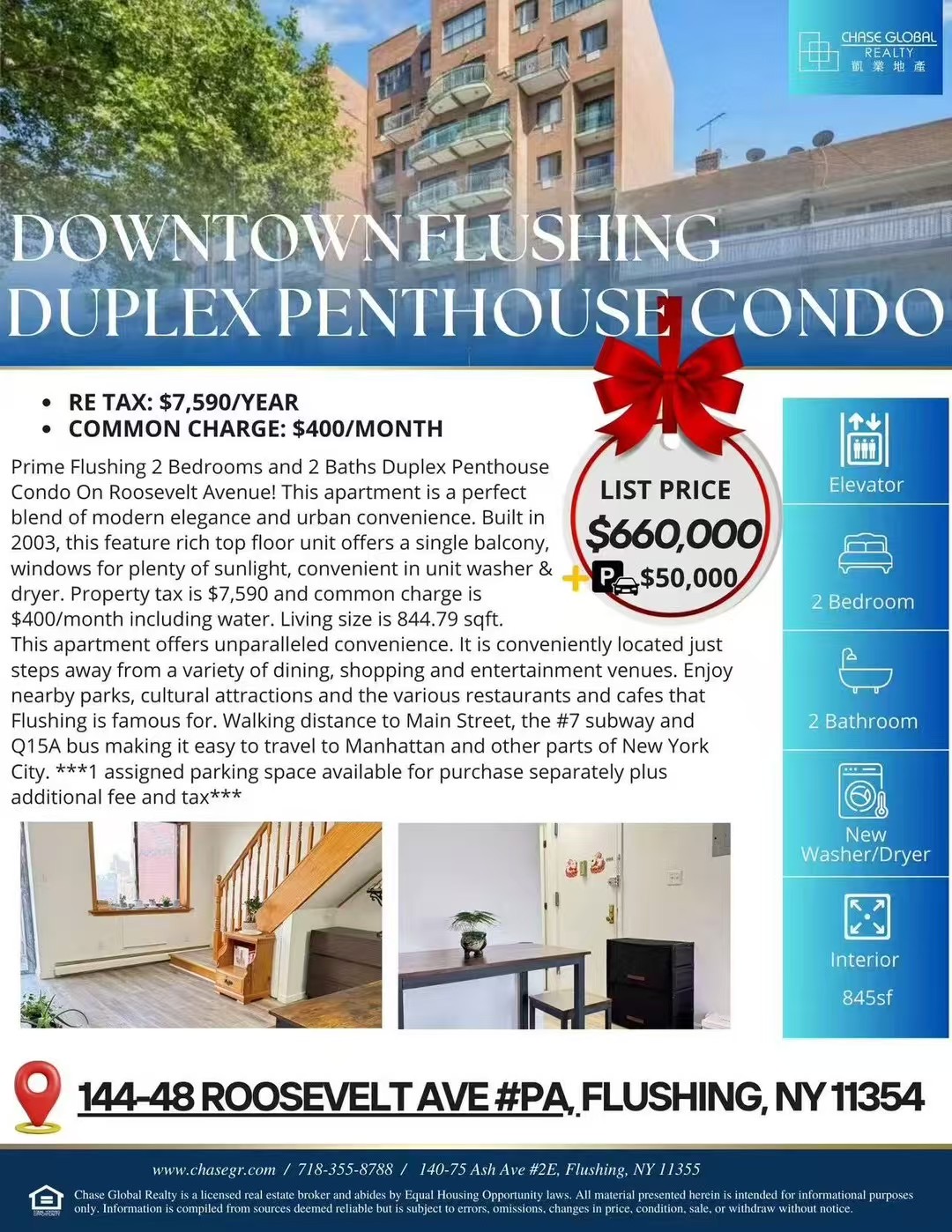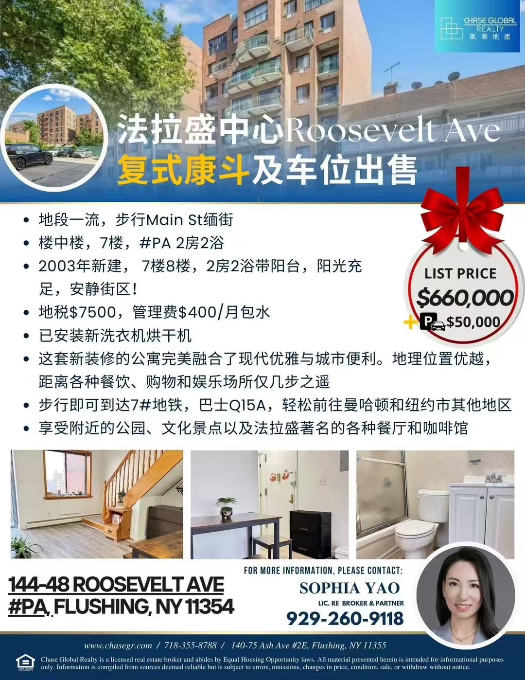 🏢 法拉盛中心Roosevelt Ave 复式康斗及车位出售!