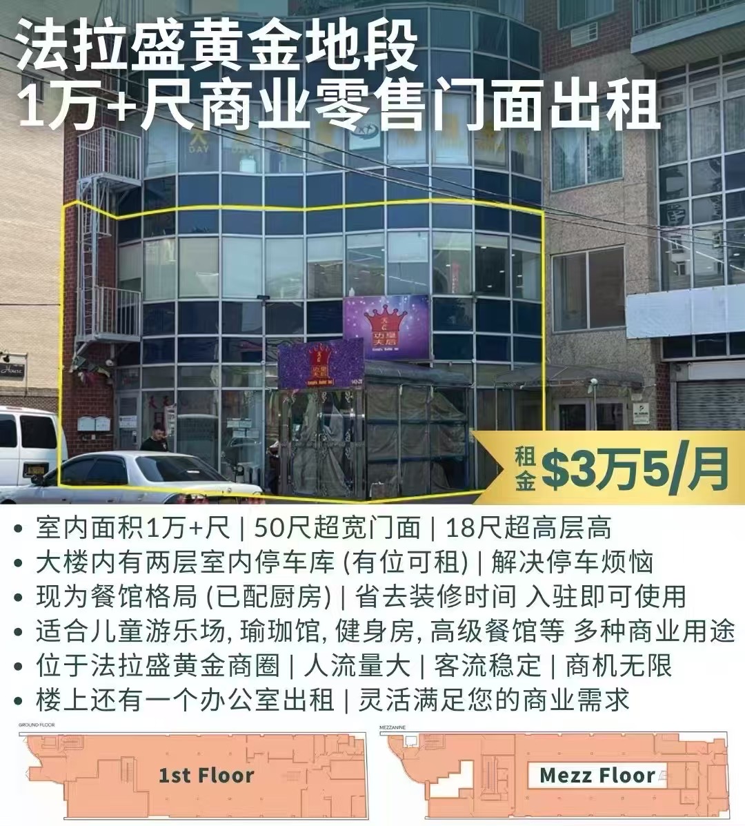 ✨ 位于法拉盛黄金商圈 | 人流量大 | 商机无限