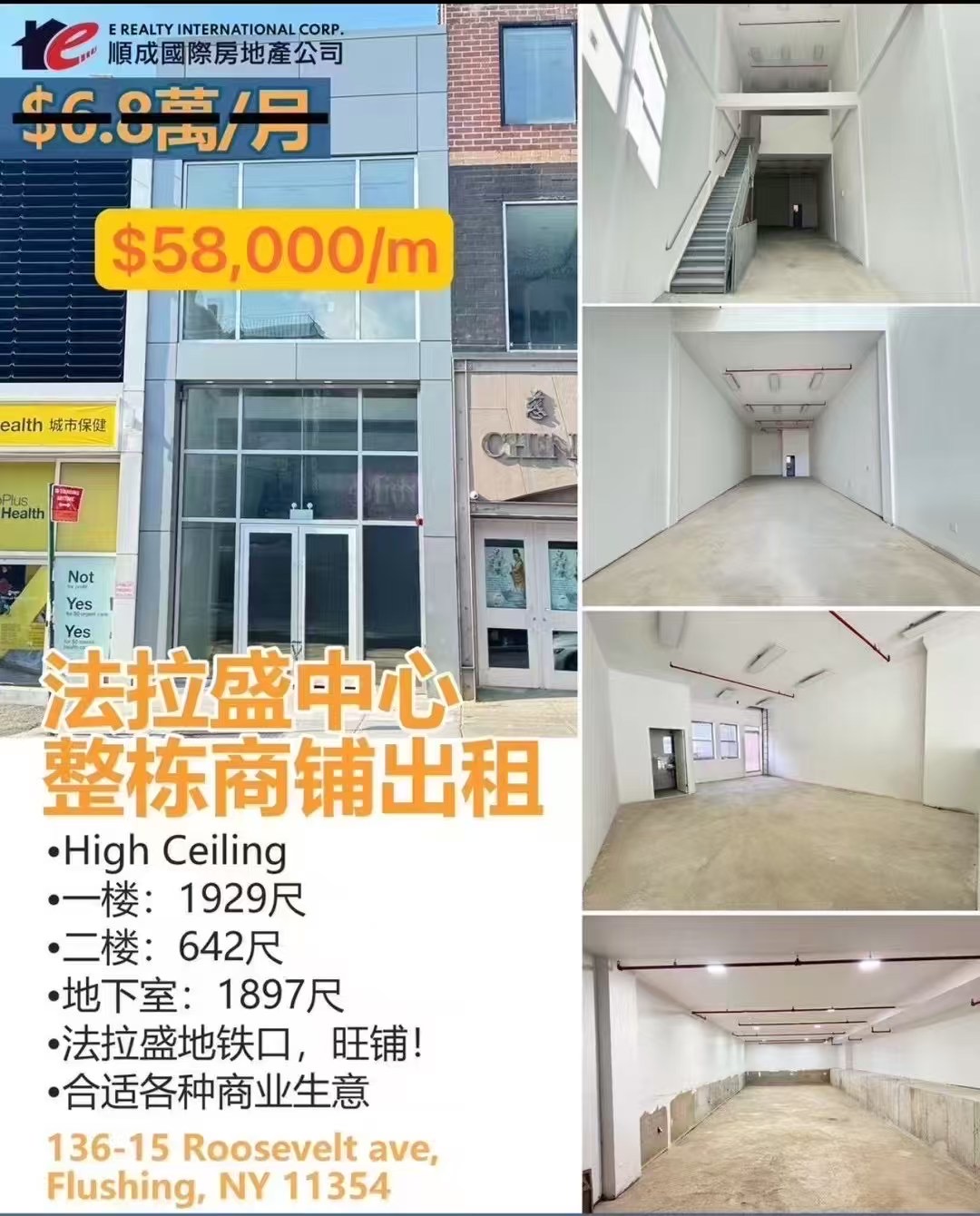 法拉盛地铁口旺铺商铺出租,适合各种生意。