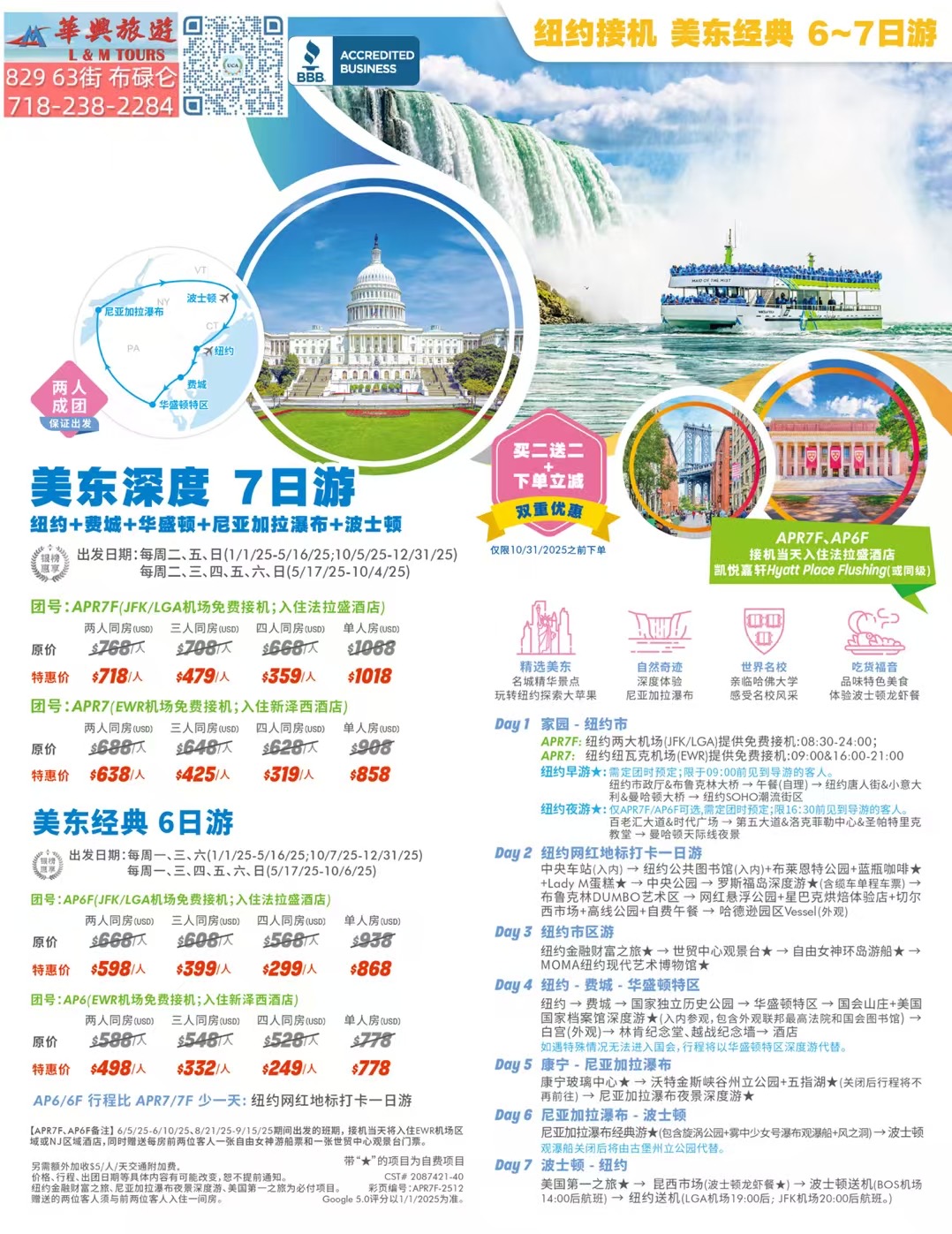 华兴旅遊 718-238-2284周一至周五 10am - 5pm 829 63 St Brooklyn, NY
