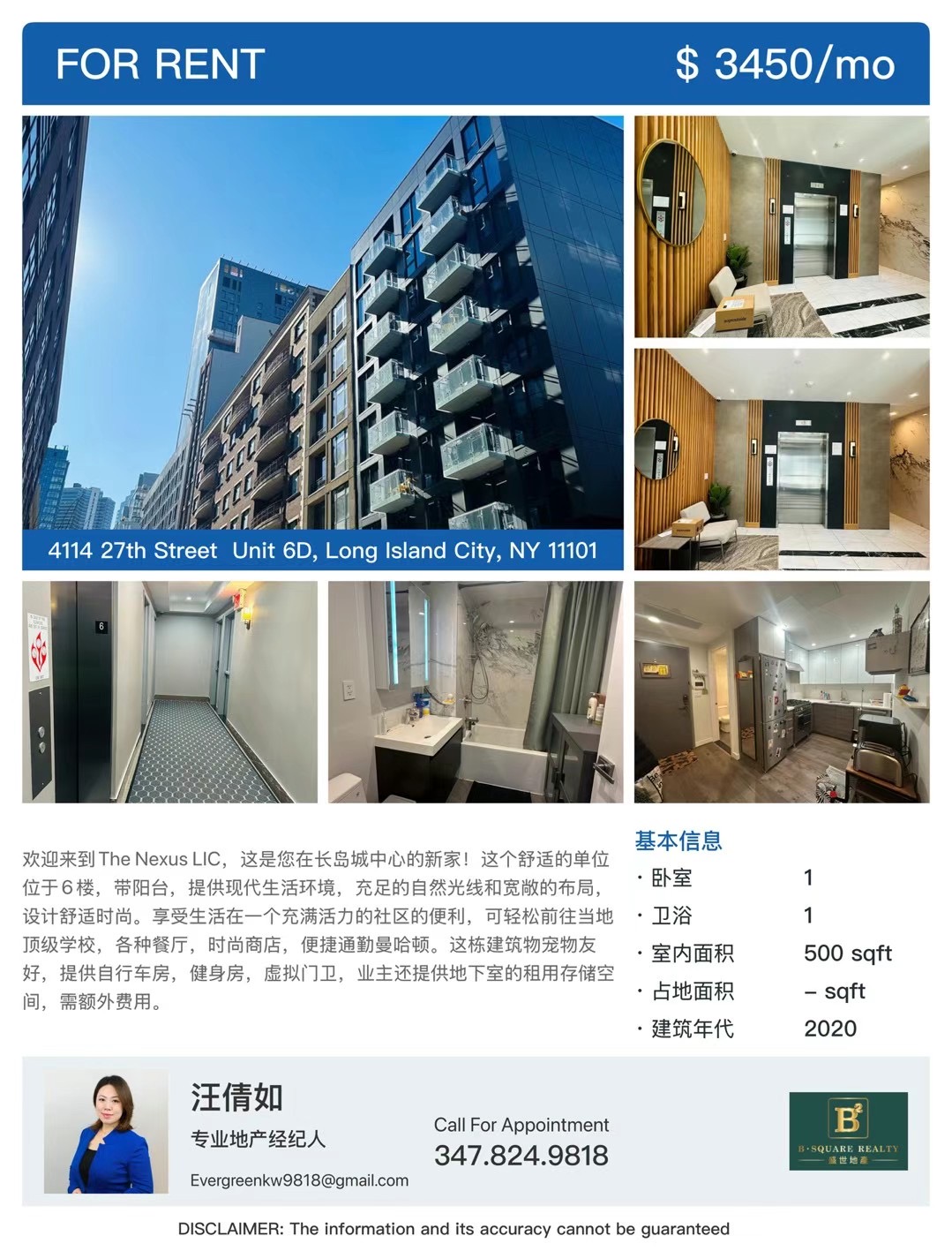 纽约学区房-长岛房产出售Long Island NY新上市长岛房屋住宅出售长岛豪宅独家代理买卖今天下午4-5:00 公展 🎈长岛市41-14 27th st unit6D 一房一厅带家具出租!留学生最爱😍 欢迎约👀347-824-9818