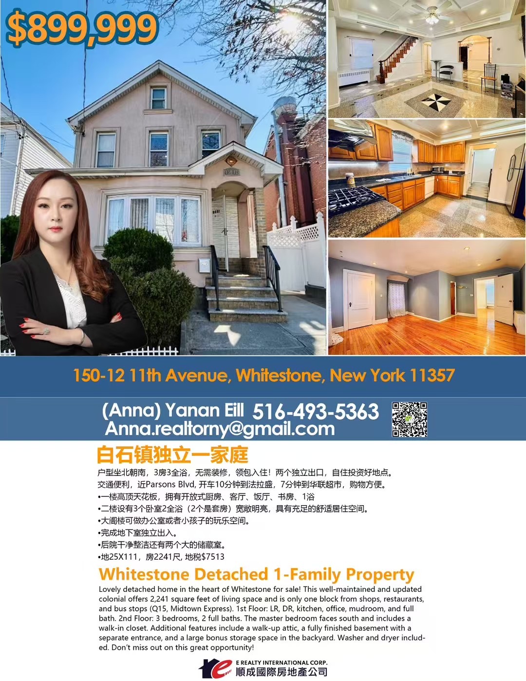 纽约白石镇房子出售Whitestone NY 新上市白石镇房屋出售白石镇豪宅独家出售买卖❤️今天周六下午1:00-4:00pm开看👀目前只有周六看请谅解🙏欢迎合作转发🤝