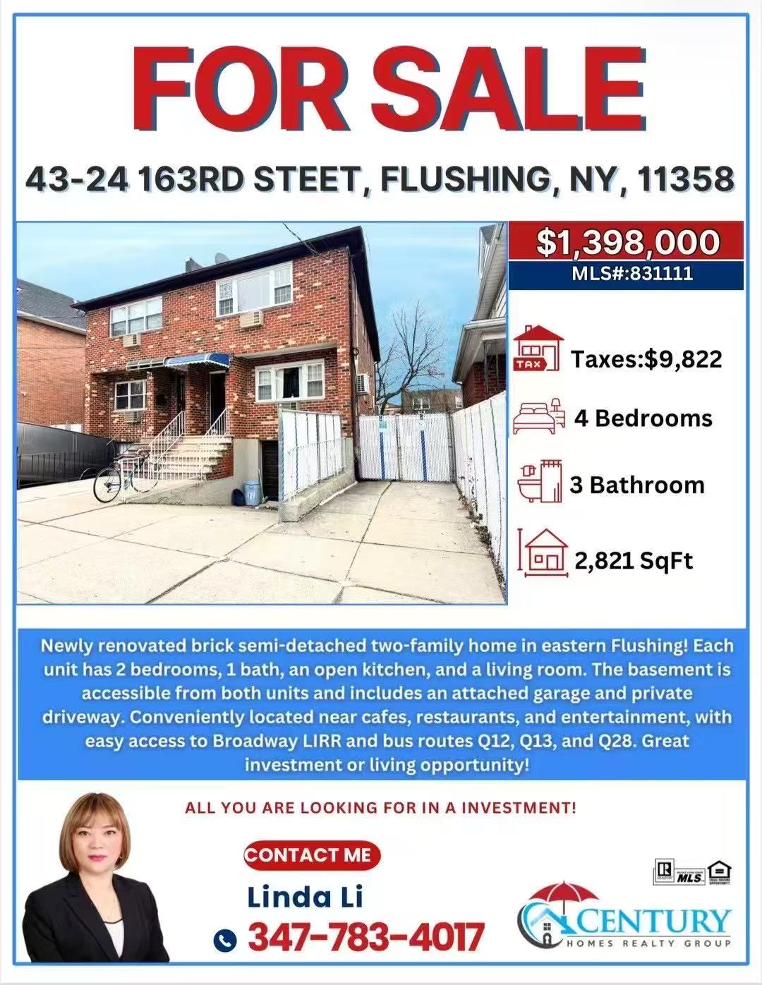 法拉盛房屋出售 Flushing NY 最新房产信息法拉盛一家庭出售,独立屋、独栋别墅、法拍房源每日更新一网打尽。法拉盛两家庭住宅出售 Flushing双家庭独立屋 纽约华人热门买房区域法拉盛合法两家庭高回报投资房产推荐,华人购房首选 投资自住皆宜 房源热销中,购房首选 自住投资皆宜 学区房源热卖中。