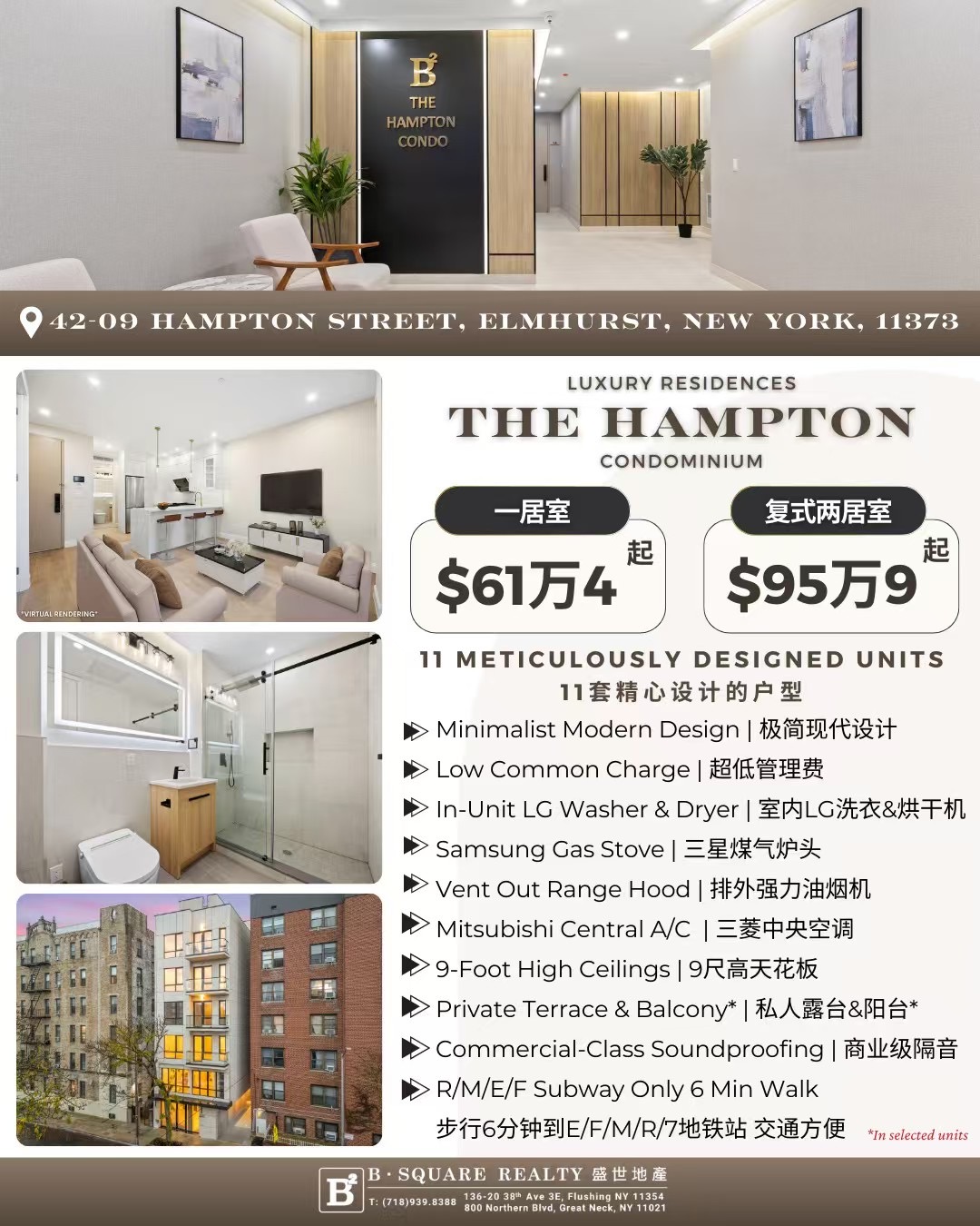 艾姆赫斯特康斗出售 全新装修 高层视野 电梯大楼 近地铁Elmhurst康斗公寓出售 华人区精装单位 可贷款 首购首选 高品质、近地铁、生活极便利,全新一房和复式康斗,本周末5-6日下午2-4点公展,欢迎所有人。 预约电话917-609-8251 盛世经纪张先生