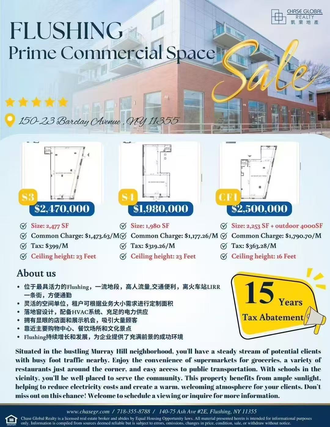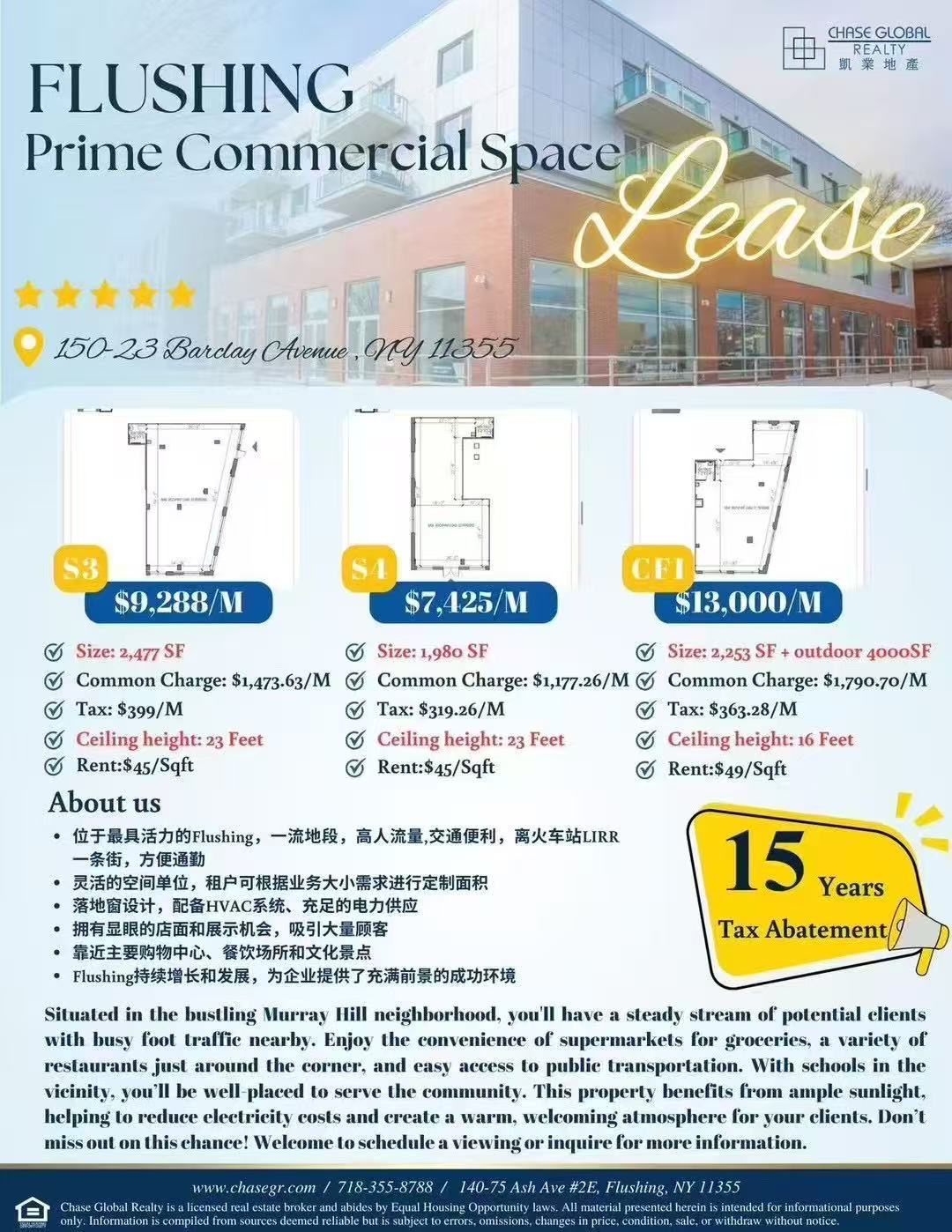 🔥【法拉盛黄金地段商业空间出租】🔥📍地址:150-23 Barclay Avenue, Flushing, NY 11355