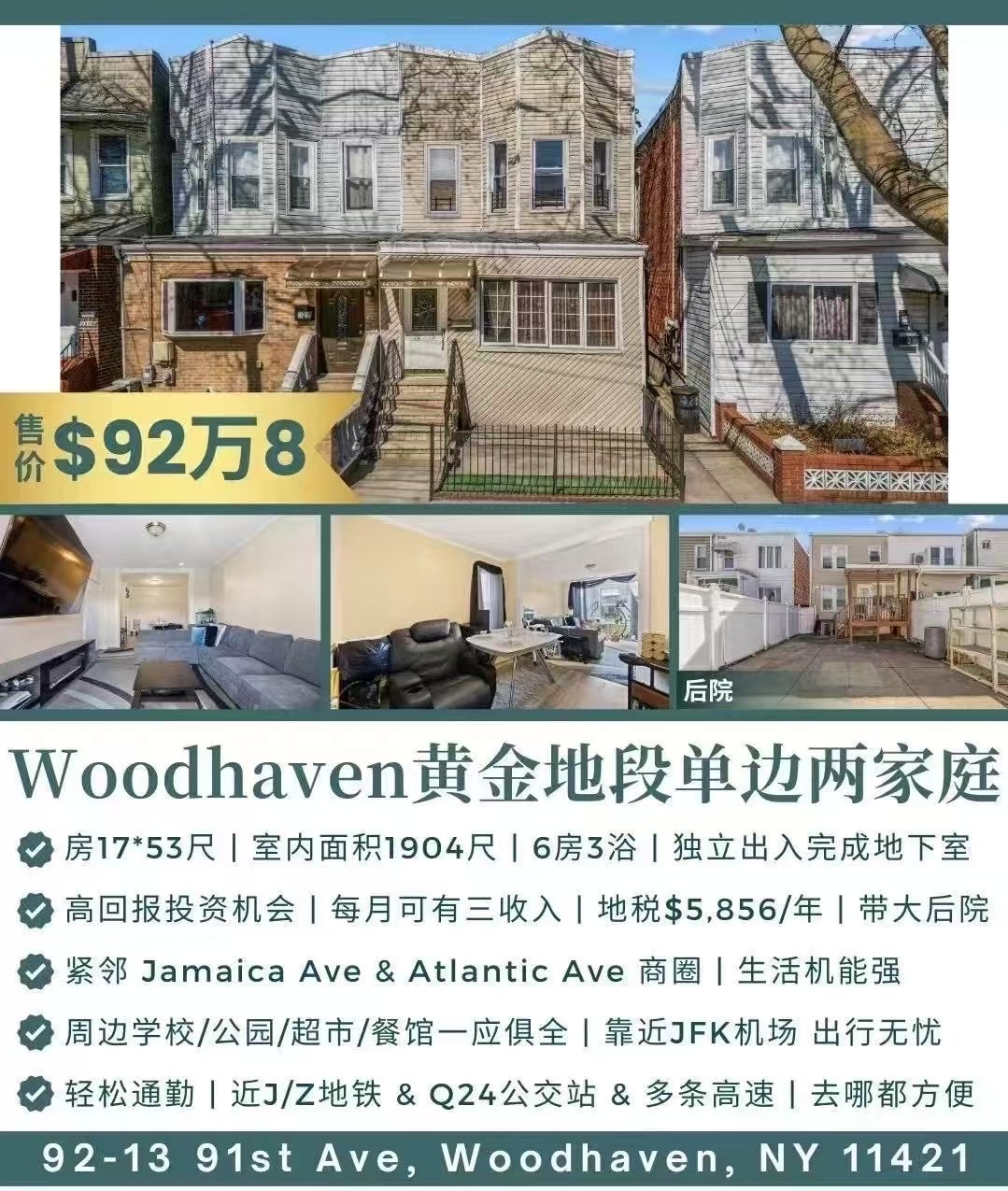 木港房产出售 Woodhaven Queens NY 独家住宅公寓房子出售 新房推荐低价抢购周四7:30PM可以看 需预约☎️
