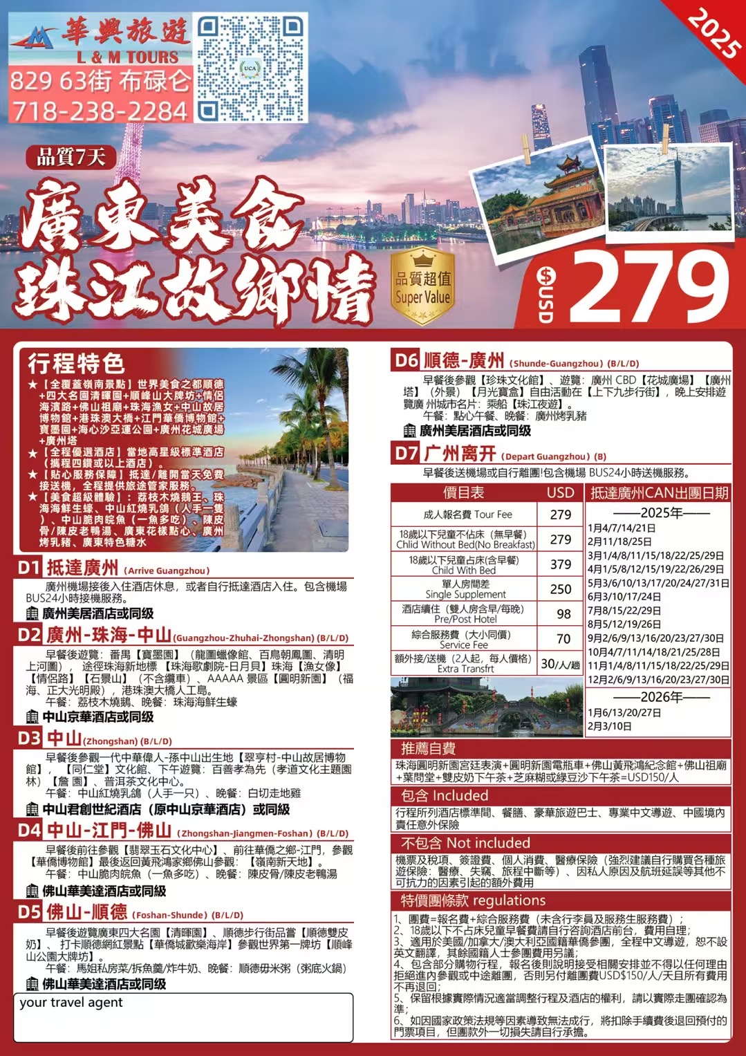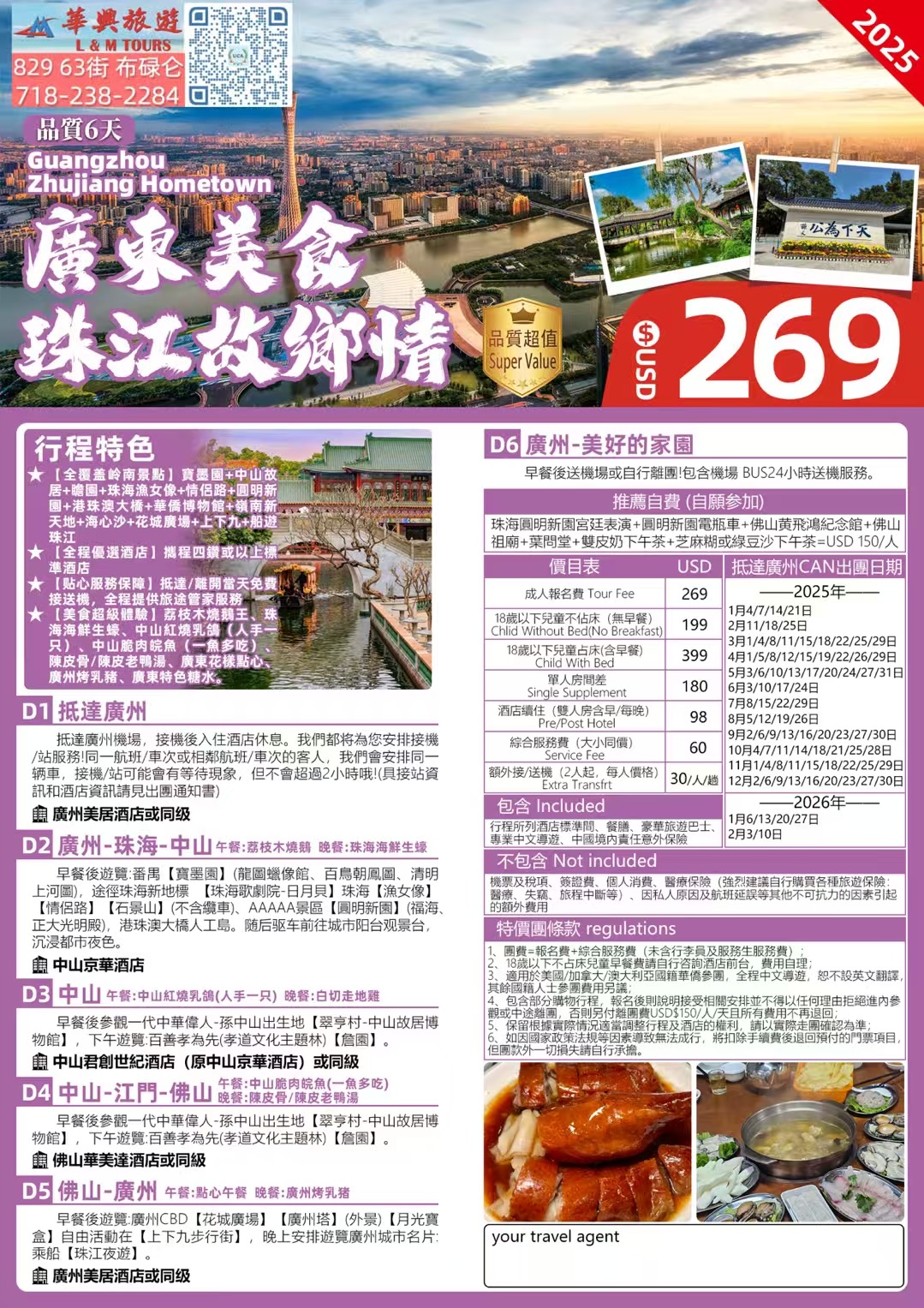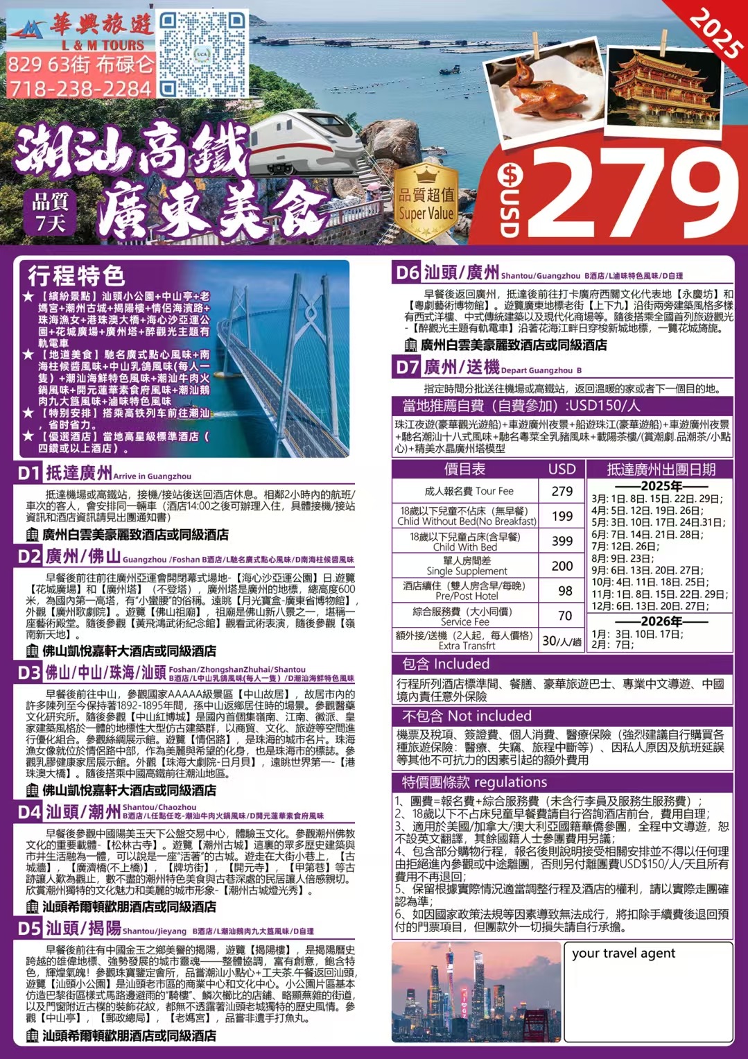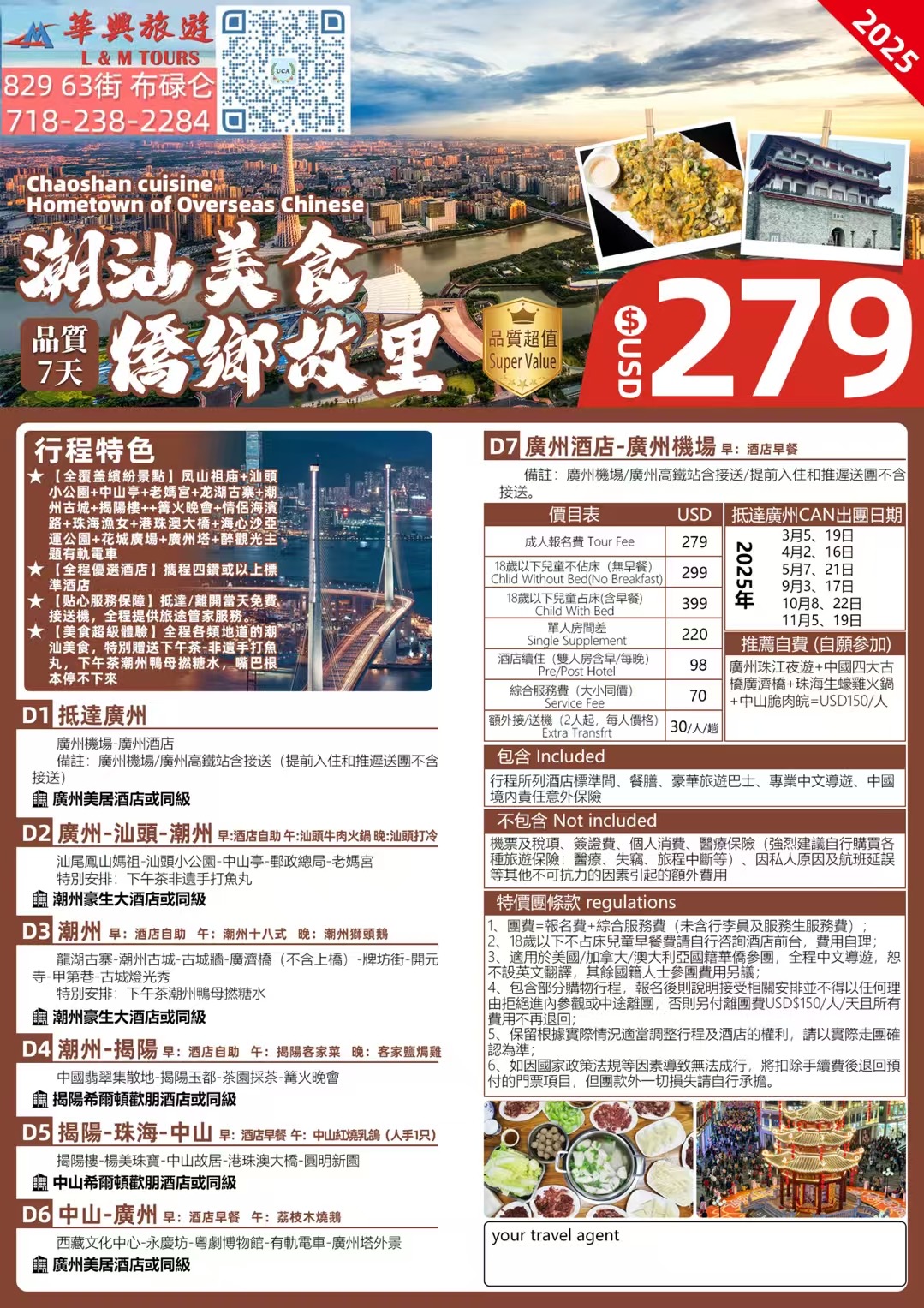 ❷⓿❷❺廣東系列🥳帶你尋訪嶺南歷史,品嚐特色美食😋1⃣廣東珠江故鄉情6天2⃣廣東珠江水故鄉情美食7天3⃣廣東潮汕美食僑鄉故裡7天4⃣廣東潮汕高鐵廣東美食7天*含高鐵