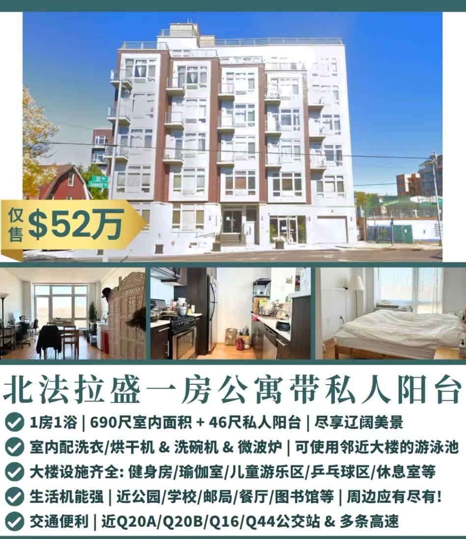 🏢 北法拉盛一房公寓带私人阳台 ⭐法拉盛康斗出售 Flushing Luxury Condo NY,法拉盛高档康斗、联排别墅、学区房源预售精选热盘