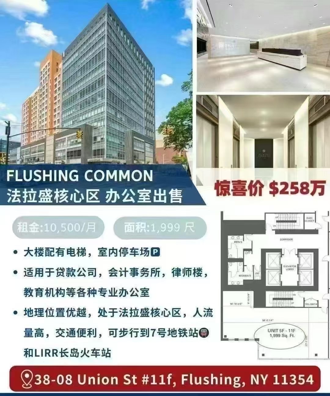 🌈独家代理👏🏼 惊喜价💰258万❗͏ 🤝欢迎合作☎转发🏢法拉盛 Flushing commons地标级建筑 25年减地税 高级办公楼出售 适合各种专业办公室
