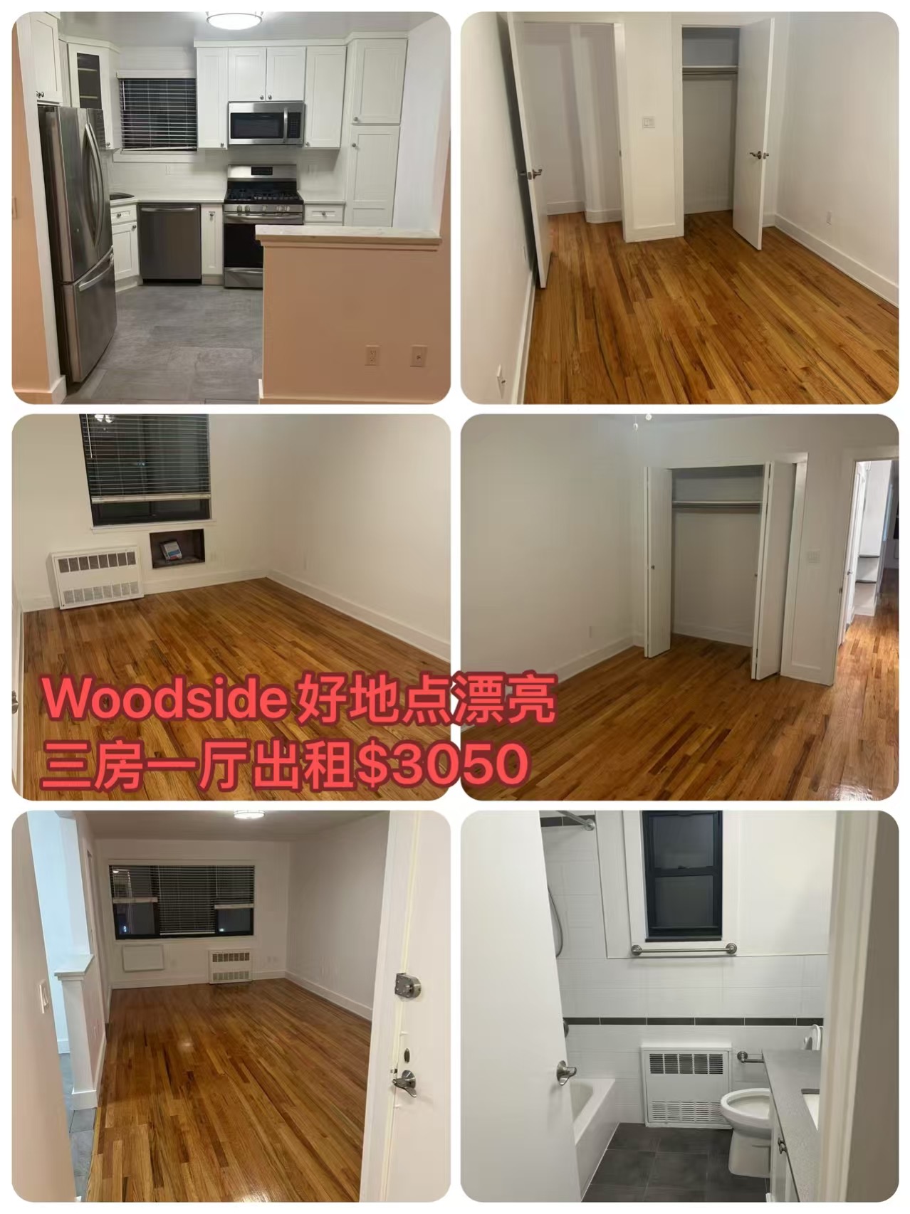 【出租】$3050包暖气热水!Woodside漂亮3房一厅一卫近地铁,超市,购物!适合安静简单家庭!欢迎各国租客,欢迎合作
