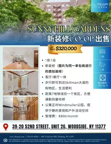 皇后区房子出售格伦代尔房屋出售 Glendale Queens NY 家庭独立屋 高回报住宅投资新盘每日更新🔥凯业地产Sunny Hill Gardens新装修co-op出售🔥💰售价$320,000