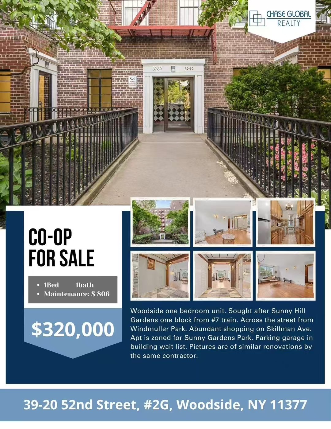 📍39-20 52nd Street, Unit 2G, Woodside, NY 11377🔹1卧1浴🔸新装修(图片为同一承包商进行的类似装修)🔹客厅/餐厅一体🔸步行即可到达Skillman大道的购物区,生活便利