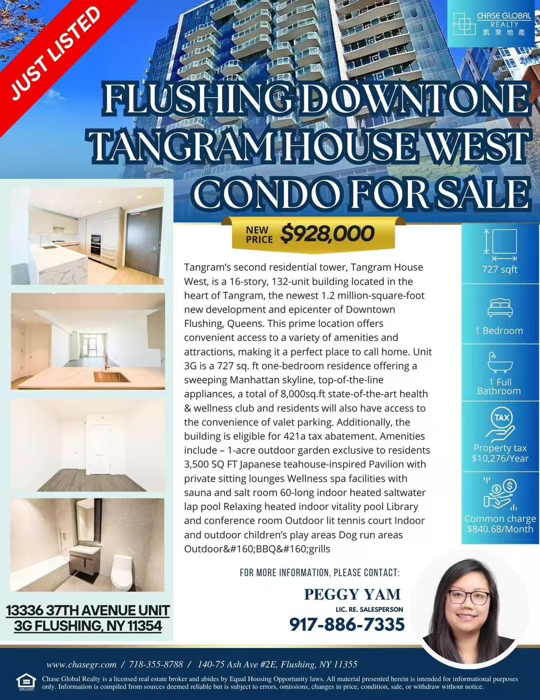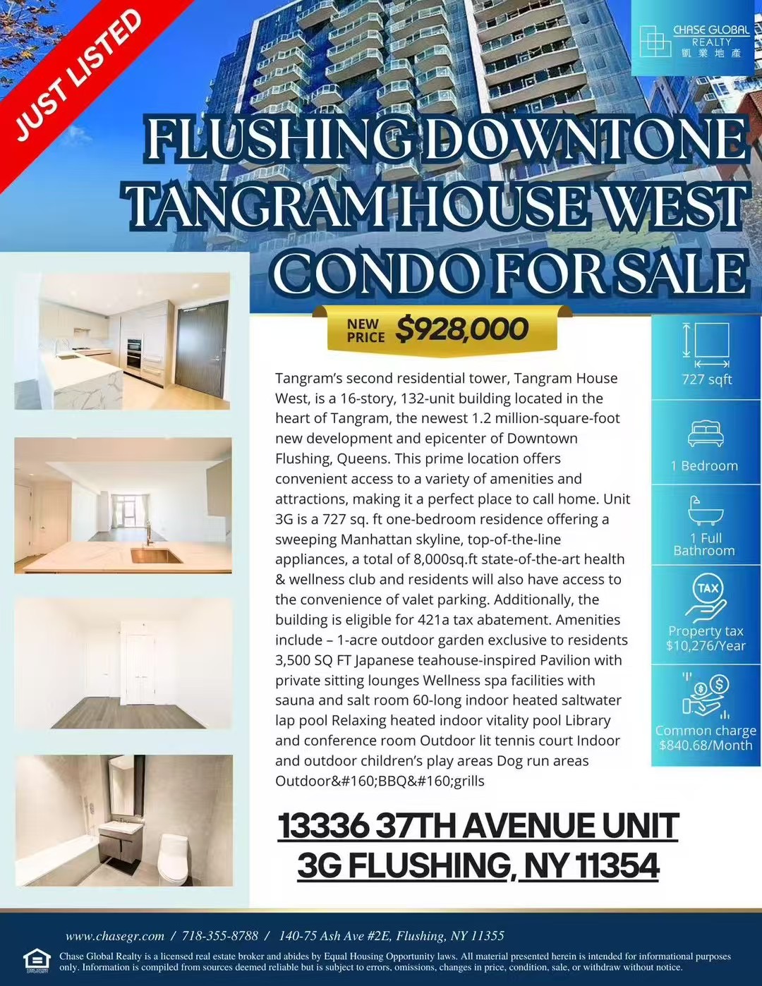 2025纽约法拉盛全新楼盘康斗出售 Flushing法拉盛最新新建康斗Condo 精装修 电梯楼 近地铁法拉盛华人购房首选 自住投资皆宜 学区房源热卖中✨ 重磅推出 | TANGRAM HOUSE WEST 一居室康斗法拉盛黄金地段 🏙️ 曼哈顿天际线全景视野 🌆